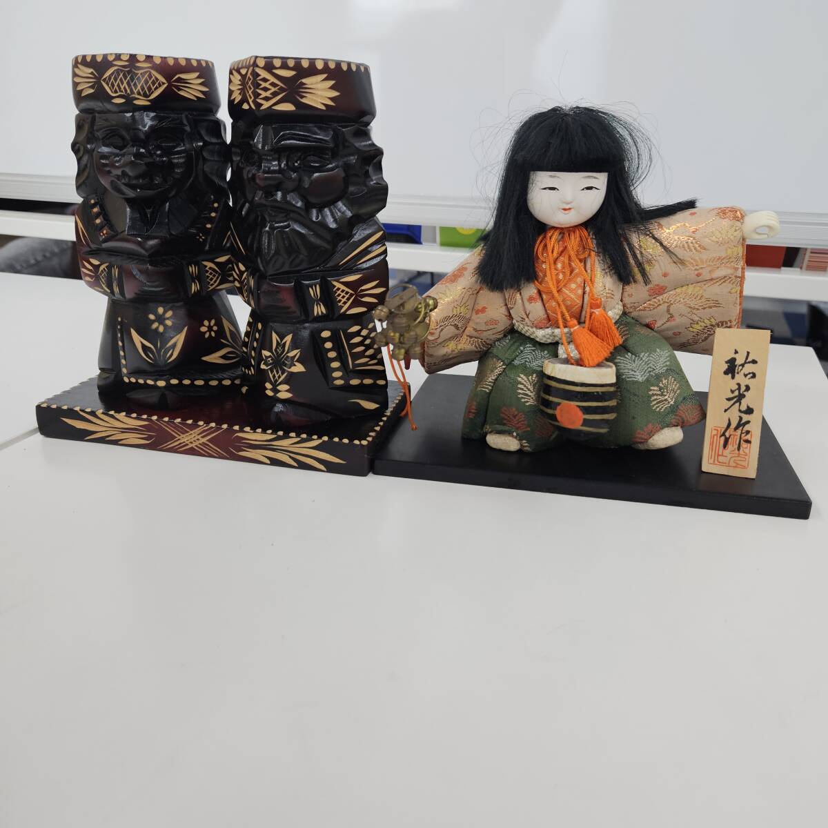 0610451s【木目込人形 2点】「晒し女」「夕鶴」木札付き/在銘あり/人形高