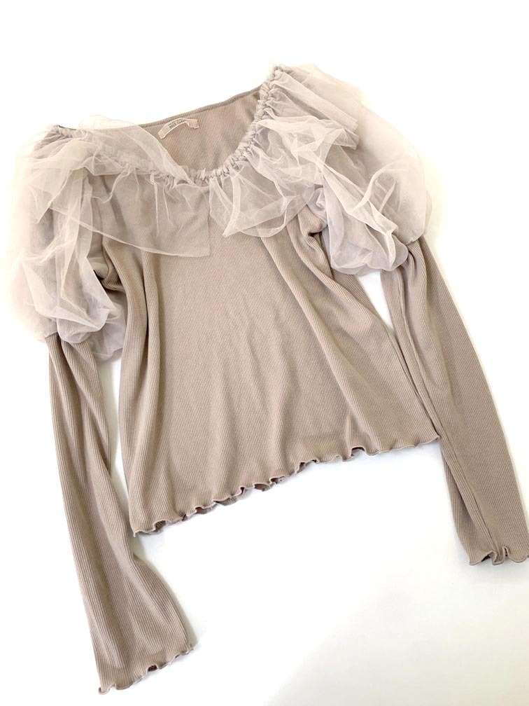 ナイスクラップ(one)リブフリルカットソー*伸縮性*フェミニン*バッククロス