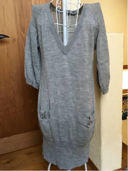 127 ナイスクラップ グレーVネックニットチュニック Mサイズ