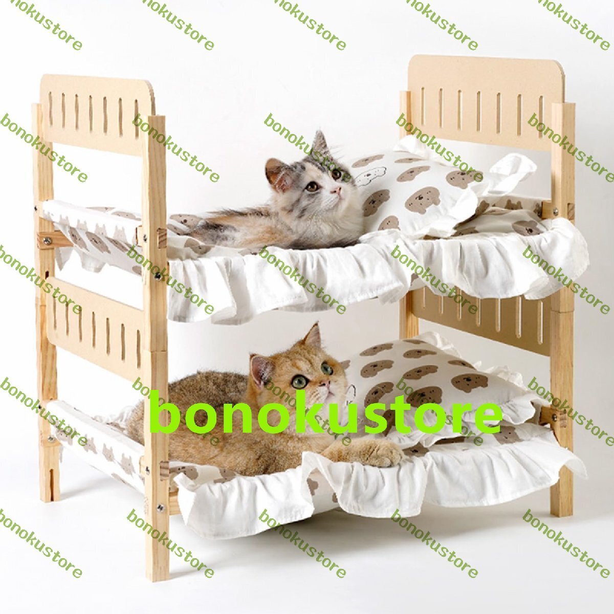 2層木製ペットベッド 犬用ベッド/猫用ベッド 取り外し可能なボルスター付き 小型