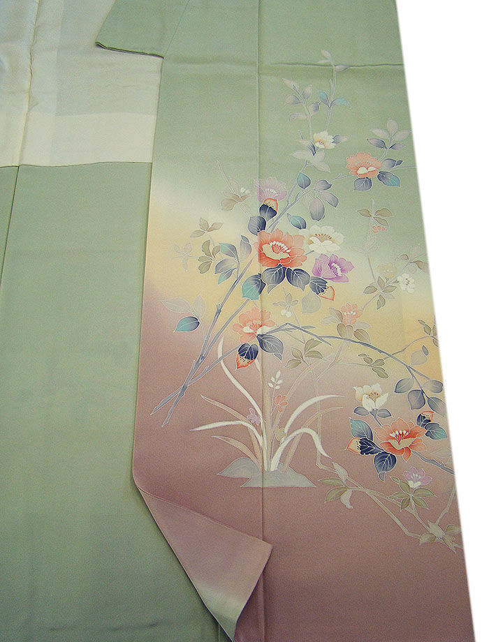 ※慶事の席にも美しく愛でフォーマルな一時を限りなく優美に演出する お顔映りも美しく演出する色彩の気品に満ちた楚々とした美しい附下げ・訪問着です。 帯や小物次第で自分らしい様々な表情をお愉しみ頂け、どんなお客様にも好感度大の 長く着られる一枚を大切に纏う醍醐味をご堪能下さいませ。 パーティー、慶事の宴、冠婚祭、結婚披露宴、お茶会、社交着等々。 40代~70代迄幅広く着用出来ます。身長158cm~165cmの貴女に最適です。 |