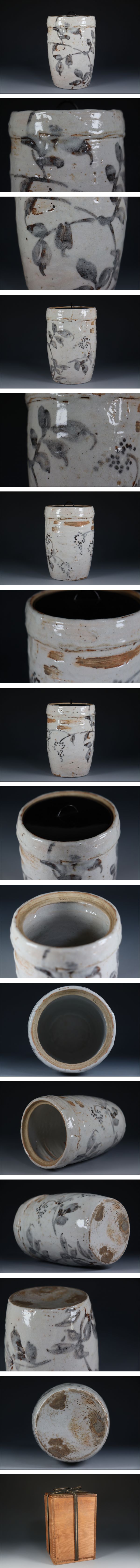 | 商品説明 | 商品名:蔵出し品 古志野 時代 絵志野 水指 付属品:時代箱あり。 サイズ:高さ18cm、口径11,4cm、高台9,3cm。 状態:経過のスレがございます。 |