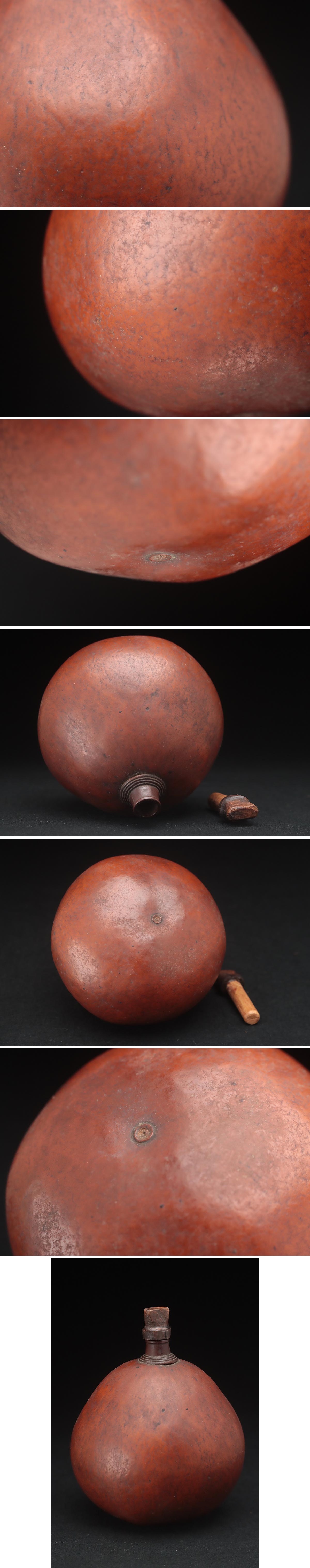 | ◆ 時代武具 古瓢箪 高13.2cm・瓢火薬入・葫芦火藥盒・焔硝入 火縄銃用道具 提げ物 小道具 古美術 ◆