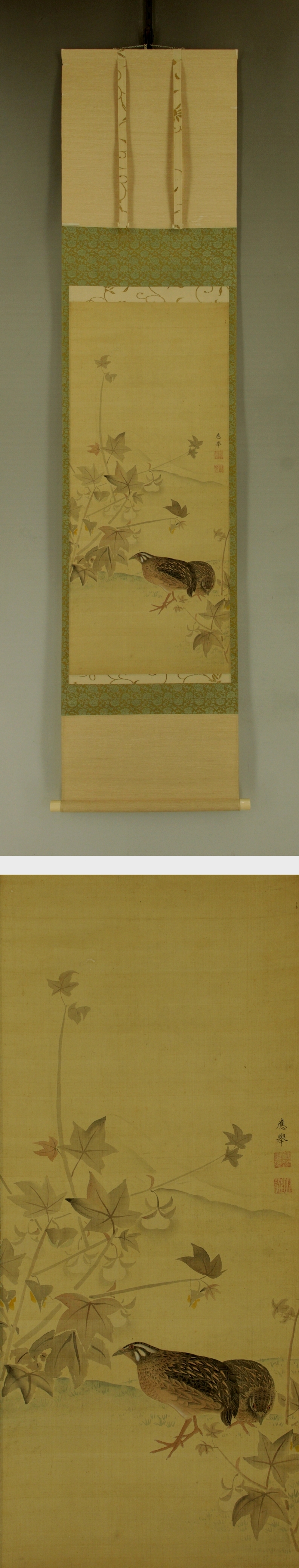 | №2512041【模写】円山応挙【鶉之図】◆絹本◆合箱◆掛軸 | |