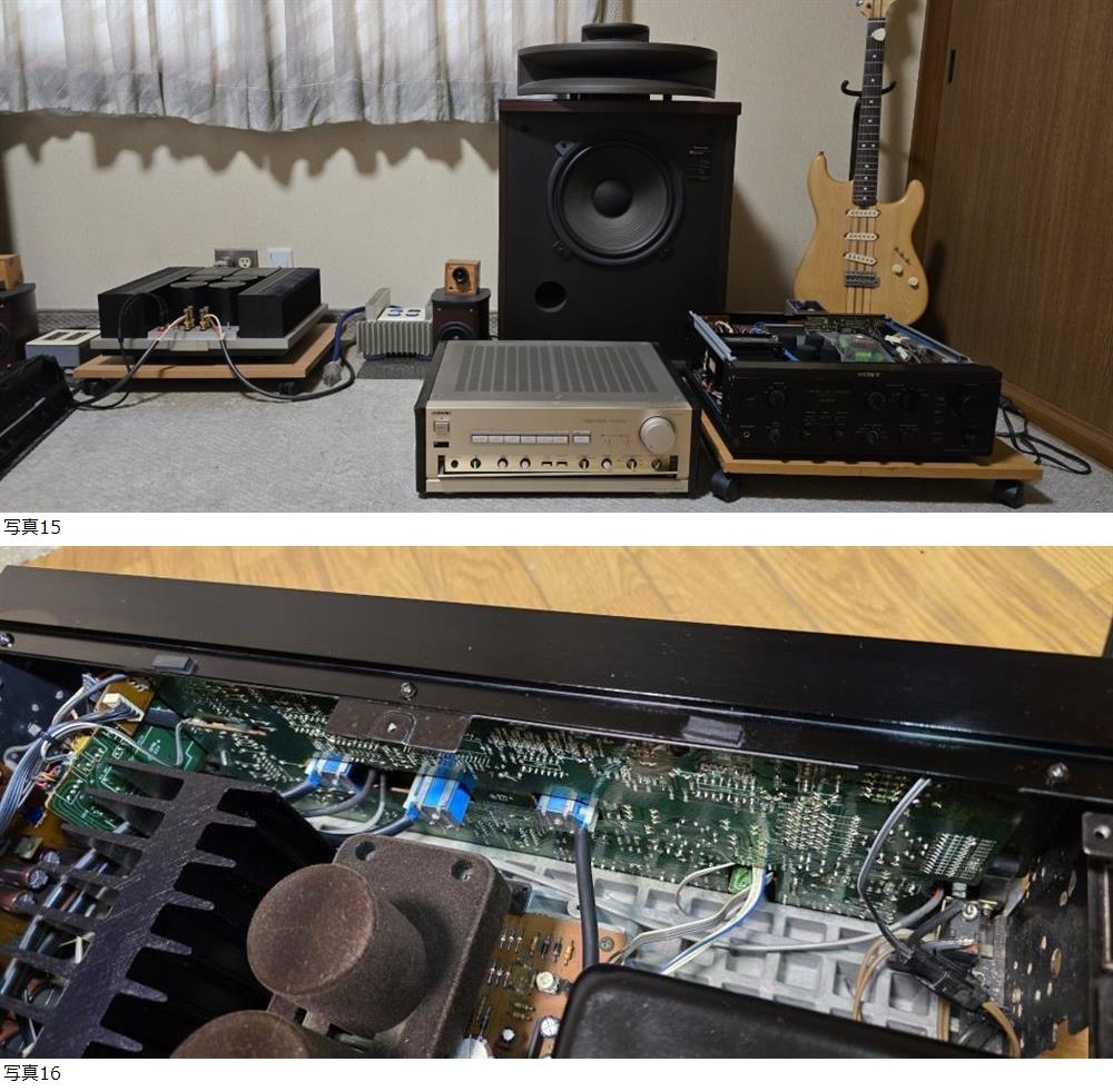 | 商品説明 | ●末永く修理、メンテナンスをさせて頂きますので、安心してご入札してください! ●修理交換部品はストックしてあるため、長期的に対応出来ます。 ※ウィークポイントで消耗品のヒューズ抵抗、バイアス/オフセット値を点検/調整してある本機は、未整備のアンプを購入、後々必ず故障が発生して高額の修理費用を払うよりも断然お得です。 (画像無しでタイトル、説明文だけの整備品にご注意を) ●このアンプは、純正本来の高音質変化/劣化/修理を避けるために、当方オリジナルの特殊な方法で、ハンダはなるべく溶かさず、メーカーサービスマニュアルに従い整備、実施しているのは当方のみです。 ※過去オーディオメーカー技術部に所属、その経験と知識を活かした整備/修理/チューニングをフルに発揮して、対応させて頂きます。 ※ノーマル/オリジナル機から、チューニング/改造のアンプまで整備、製作対応しております。 ご要望があればご連絡ください。 改造内容は、基本回路は変更せず、付帯部品交換、回路パターン増強等、オリジナル音質は変わらない様にチューニングします。 ●説明 以下、当方の定型文に手を加えての簡易説明になります。 必ず最後までお読みください。 ~SONY TA-F555ESG~ ¥128,000(1989年発売) ※TA-F555ESRをベースに、リモートコントローラーの搭載による操作性の向上や、一部パーツの見直しによる音質改善を図ったプリメインアンプ TA-F555ESGです。 ※TA-F555ESGから装備したリモコンからの指令に基づき、マイコン制御の小型モーターを駆動することで内部ロータリースイッチによる入力ファンクションの切替えとボリュームコントロールを制御、これにより音質的に不安の残る電子スイッチや電子ボリュームを使用せずにリモコン操作を実現 ※シャーシには、素材や形状などのあらゆる角度から無振動・無共振設計を追及したアコースティカリーチューンドGシャーシ(Acoustically Tuned Gibraltar Chassis)を採用 ※オーディオ回路のプリント基板やパワートランスなどの主要パーツは、Gシャーシに直付けして強固に固定、ヒートシンクには、パワートランジスター取付部付近の厚さが20mmにも及ぶアルミ押し出し材を採用 ※より理想的な動作のコンデンサーに近づけるため、電解コンデンサーの容量を増やすのではなく、ケース内部で小型のコンデンサーを数個パラレルに接続したスタッキングタイプを採用 ※防振性をより徹底させるためコンデンサーのケース及びコンデンサーを固定するバイブレーションプルーフプラットホームにベルベット状の静電植毛を施す (555シリーズ中、ESGのみ採用) ※全てのRCA端子に、接触抵抗を減少させるため、金メッキ処理を施す などのスペックです。 ●内外装 ※外装目立った傷は少ない綺麗な個体です。 (フロントパネル上一部若干変色有り) ※内部は、徹底的に清掃を実施、綺麗な状態に仕上げました。 ●使用頻度 ※内外装部共に美品機に仕上げましたが、37年前のアンプの為、使用頻度は不明です。 ※古い工業製品は不特定多数の人の手を渡り使用されているのが通常で、車の様に物的証拠を提示出来るオドメーター/走行距離表示の機能が無いため、常識的に考えて「使用頻度不明」が正しい表記になります。 ●使用僅少/整備済みタイトルアンプの見分け方 ※ヒューズ抵抗値を計測、規定値よりも1割以上数値が上がっていた場合は、使用過多で、使用僅少のアンプではありません。 ヒューズ抵抗は使用頻度に応じて抵抗値は必ず上昇します。 ※他方、トランジスタのhfEの計測及び電解コンデンサ容量抜け/低下/容量オーバーを計測、各数値の変動があればやはり使用僅少ではなく使用過多になります。 ※整備済みタイトルアンプの確認も必要です。 オフセット調整/バイアス調整済みと明記してある場合、実際にテスターで値を確認してください。 特にDCオフセット値はスピーカー端子にテスターを接続して簡単にDC漏れの点検が出来ます。 限りなく数値が0に近いのは調整済みアンプなら当然で、数値が大幅に大きい場合は未調整でDC漏れの証拠になり、最悪スピーカー破損の危険性があります。 そのため、絶対に数値の確認は必衰です。 ※大抵、タイトルだけで調整中の画像を載せていない場合は未調整機=詐欺アンプで、今現在!ではタイトル/説明文詐欺は数多く見られます。 ※一般の人は内部の確認、電気計測等出来ないのをいいことに、長文の説明でうまい話ばかり載せしている輩も見受けられます。 そのような場合は、画像確認及び整備/調整中の画像が無い出品物については、突っ込んだ質問を出品者にしてください。 出品アンプは使用僅少と記載してあるが、電圧調整中の画像や使用僅少の物的証拠を何故載せないのか、と。 (都合悪い質問なので無視するとは思いますが) 兎に角、自画自賛の長文ばかり載せているのはよくある詐欺の常套手段です。 修理をしている出品者にしてみれば、説明文を読めば詐欺と分かる内容です。 注意! タ