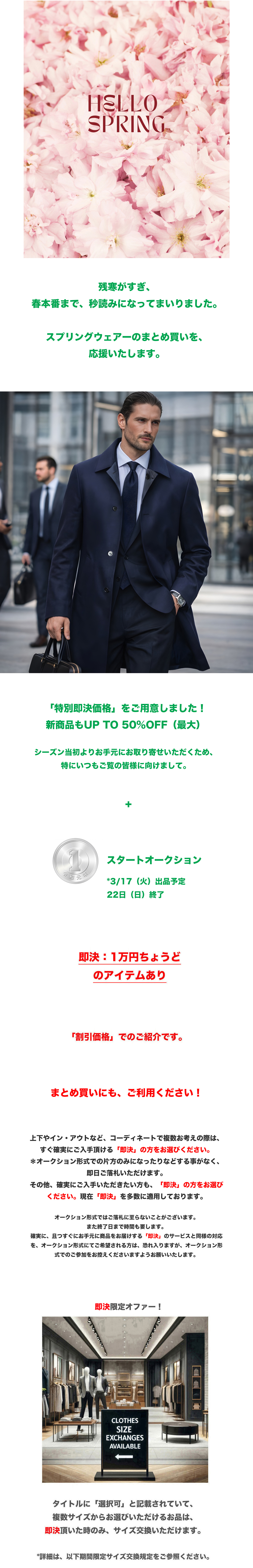 ●イタリアのプレミアムラグジュアリーブランド、ベルベストの、春から最適な軽やかさと端正な佇まいを兼ね備えた、SUPER 120'S生地を使用した、ジャケット&パンツのセットアップスーツでございます。クラシコイタリアの伝統を継承する名門ならではの、構築的でありながらも柔らかな仕立てが魅力の一着となります。 ●ジャケットはシングルブレスト仕様、端正なノッチドラペルに、胸ポケット・両サイドパッチポケットを備えた軽快なデザインでございます。裏地は背抜き仕立てとなり、春夏シーズンにも快適な着用感を実現いたします。内ポケットも左右に配され、実用性にも配慮された仕様です。本切羽仕様で後付けボタン処理をいただけるボタン別付属となりますので、ジャストサイズに袖丈を合わせられます。バックはノーベント仕様となり、美しいシルエットをです。 ●パンツはフロントジップ仕様、前後ポケットを備えた実用的なデザインでございます。ノータックのすっきりとしたラインに加え、ウエスト後部はシャーリング仕様となっており、程よいフィット感と快適性を兼ね備えております。中心に、かっこいいセンターピンタックで脚をスッキリ見せてくれます。センタープレスのように、ラインが消えていくことがなく安心です。バックは両玉縁ポケット仕様で、ボタン留めディテールが上品さを引き立てます。 ●生地は、春夏に相応しい軽やかなSUPER 120'Sウールファブリックを使用し、上質かつ、さらりとしたドライなタッチと自然な光沢感が特徴でございます。過度な装飾を排したミニマルなデザインの中に、ベルベストならではの立体裁断と高度な縫製技術が息づいております。ラペルに添えられたフラワーピンが、さりげないイタリアンエレガンスを演出いたします。スペアボタンの付属がございます。 ●ビジネスシーンはもちろん、インナーにカットソーやニットを合わせたドレスダウンスタイルにも対応し、オンオフ問わず幅広くご活用いただけます。軽やかでありながら格調高い佇まいは、大人の男性にふさわしい品格を備えたセットアップでございます。 ●ジャケット:表内ポケットあり。サイドベント。袖ボタン後付け仕様(袖ボタン付属)。スペアボタン付属。裏生地袖、背抜き仕上げ。 ●パンツ:前膝あたりまで裏生地付。前後ポケットあり。センターピンタック。ウエスト後ろ伸縮します。 ●イタリア製 ●色:霜降りグレー系 細やかな混合織生地 ●素材:ウール100% SUPER 120'S 裏生地:キュプラ100% ●サイズ:52 /7R *日本サイズ概ねXLサイズ辺りとなりますが、下記詳細サイズもご確認の上、よろしくお願いいたします。 ●詳細サイズ(cm)置いた状態で: ジャケット 肩幅:46(右肩端~左肩端の直線距離) 身幅:55.5(右脇下~左脇下の直線距離) 袖丈:64.5(肩の縫い目~袖先) 着丈:76(襟の付け根~裾まで。襟の幅を含んでいません) パンツ ウエスト約:90~100位*着用時伸縮します わたり幅:約33.5 股上:24.5 股下:95 裾幅:19 詳細サイズご参考 ※大よその採寸となります。 ※お品物はタイトルにございますもののみとなり、着合わせのお洋服や小物などがございましても、それらは含まれません。 ※素材の特性上、多少のことはご容赦くださいませ。 ※ご質問は、必ずご入札前にお願いいたします。(ご入札後、ご落札後の取引ナビからのご質問はお避け下さい) ☆☆☆ご連絡・お支払い(かんたん決済)☆☆☆ ご落札後24時間以内に、取引ナビからご連絡(お名前・ご住所全て。*サイズ選択いただけるオークションはサイズのご連絡も含め)・かんたん決済可能な方。 *銀行振込の場合は翌営業日、コンビニ決済はご落札後2日目の午前中まで、お支払いをお済ませ下さいませ。 電話応対は、一切致しておりません。取引ナビをご利用下さい。 ☆☆☆受け取り連絡☆☆☆ 製品到着後24時間以内。*出来る限り、到着日当日に受け取り連絡頂きましたら幸いです。 *配達日指定ご希望の際は、ご落札後、最長4日以内に「受取連絡」ができるようお願いします。(北海道・沖縄・離島の方は5日以内) *特別に記載をしました際には、そちらを優先させていただきます。 ☆☆☆同日に2点以上のご落札の場合☆☆☆ 「まとめて取引」を、最初にご選択ください。 *「まとめて取引」を、お届け情報などご入力前にご選択ください。同梱発送となり、一品分の送料のみとなります。 *「まとめて取引」をご選択されなかった場合、出品者側では送料訂正できませんので、予めご了承くださいませ。 新規IDの方は、こちらを必ずご覧くださいませ ☆☆☆ご入札及びご落札のキャンセルはしていただけません☆☆☆ ![]() 【お支払い】 合計金額 = ご落札価格 + 送料 ◆かんたん決済(ご落札後24時間以内に支払い手続きを完了ください。) *2点以上同日ご落札の場合は、『まとめて取引』をお選びください。 *領収書がご必要の際:ご落札後Eメールアドレスを、取引メッセージにてお知らせ下さい。電子領収書をEメールに添付してお送り致します。 !か