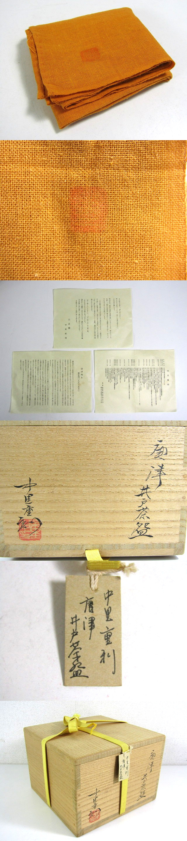 P264 中里重利 唐津井戸茶碗 共箱 共布 茶道具 唐津焼 美品【説明欄に詳細写真有り】