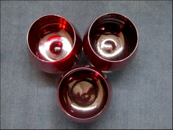 | 【蔵】★昭和レトロ ガラス ルビーレット色 ブランデーグラス 深紅のガラス ヴィンテージ 計3点★ | ||