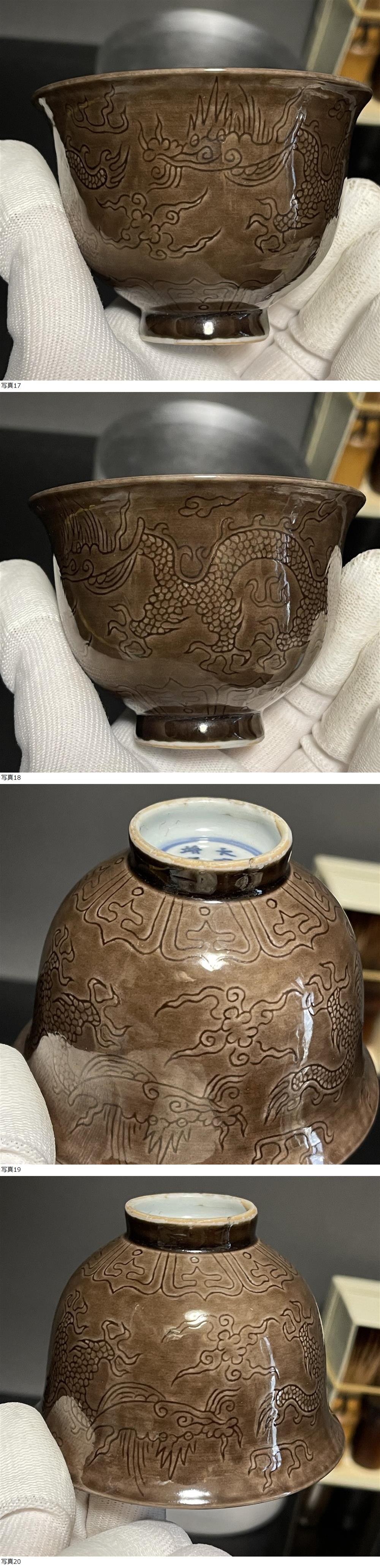 | 【C180】清時代 紫釉 龍紋 茶盃 茶杯 ぐいみ 茶器 茶道具 煎茶道具 賞物 置物 飾り 時代物 中国古美術 |