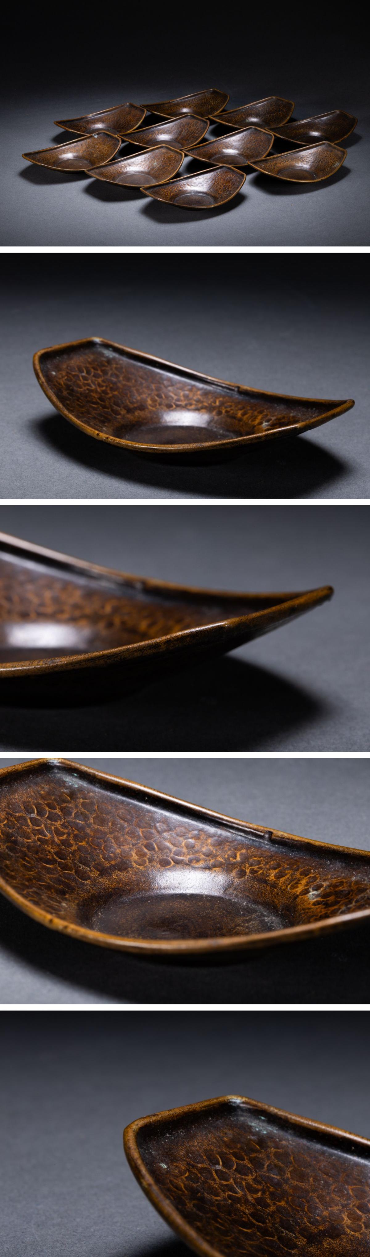 【雲錦】1円から 時代物 銅製 茶托十客 古茶煎道具 時代物保証 古美術 骨董品7L10-110S03