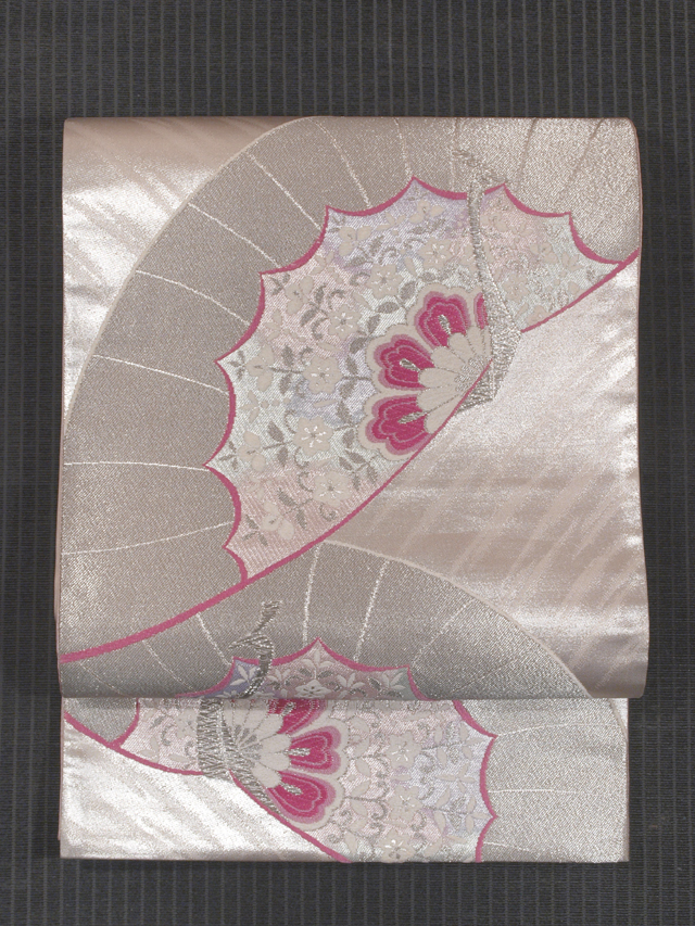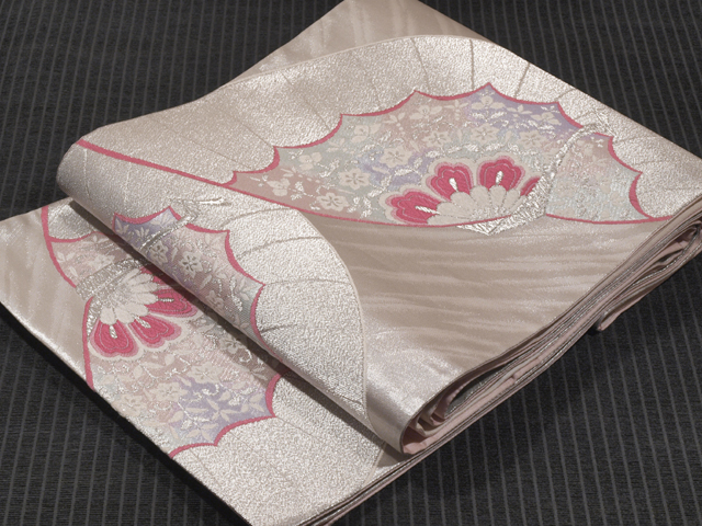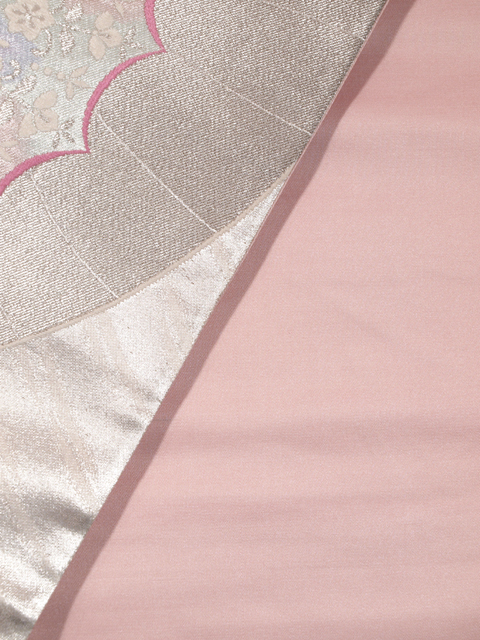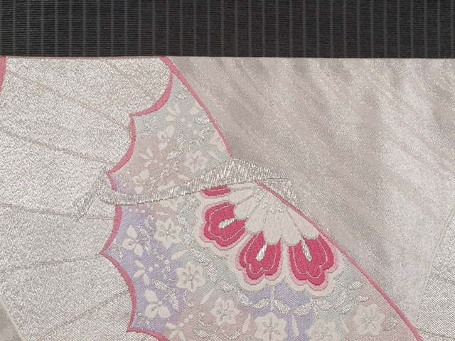 | 詳細 | 銀色の地に、宝相華(ほうそうげ)が配され、抽象的なタッチであらわされた鳳凰の文様が織り込まれている西陣織の袋帯です。 透明感と幻想的な優美さが感じられる意匠です。晴れやかな趣きで、振袖にぴったりです。 ユーズド品で、前の折り跡と結びジワがあります。胴回り内側柄抜け部分に長さ約 2mm~1cm の薄めの黄変が 2~3 か所ありますが、そのほかに目につくしみやよごれ、褪色などのダメージはなく、全体的にはきれいな状態です。 |