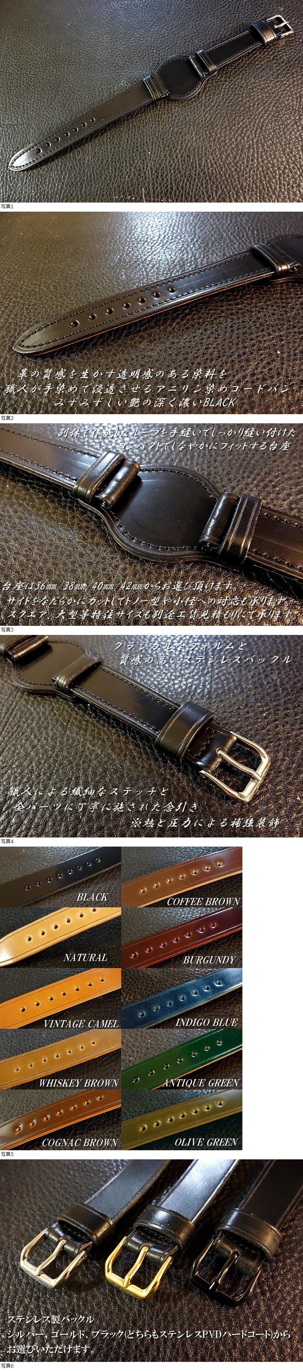 | ◆台座付VINTAGE BELT◆高品質国産アニリン染めコードバン カスタムオーダー(カラー/台座サイズ/バックルカラー) 日本製 受注生産(納期10日前後) 腕時計ベルト |