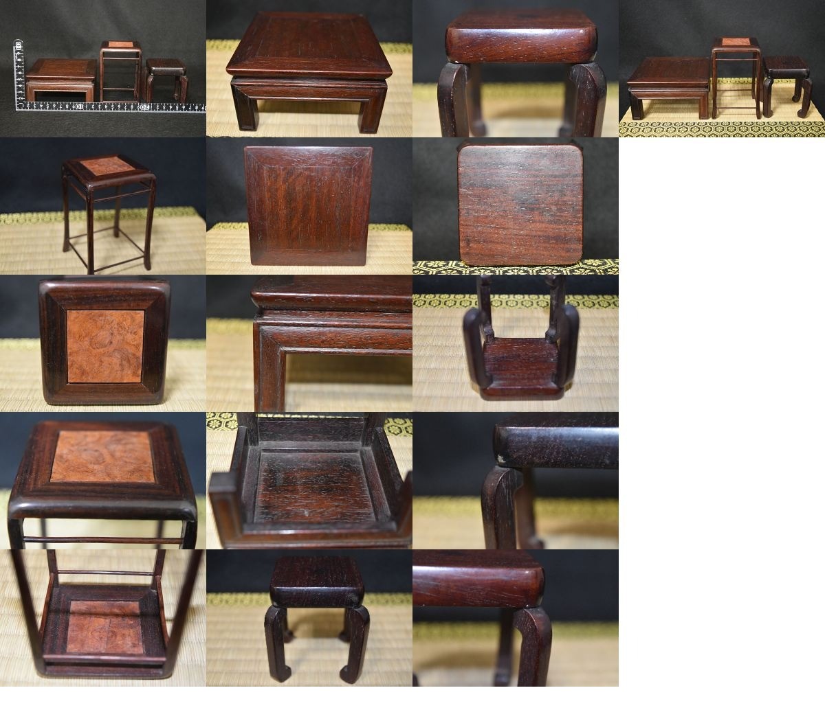 【光成】中国古玩「紫檀・唐木・小飾台3点」無傷・1点天板葡萄使用