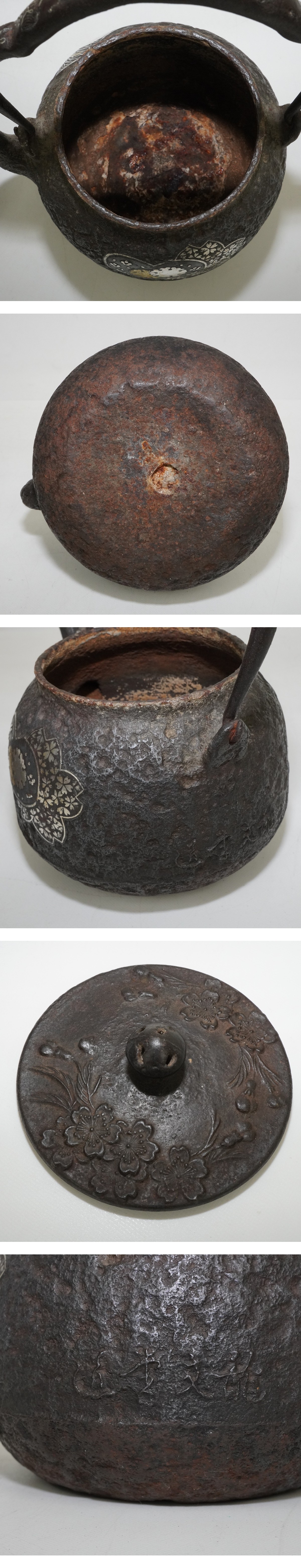 | 龍文堂 鉄瓶 横銘 金象嵌 銀象嵌 梅 すすき 月 湯沸し | ||||