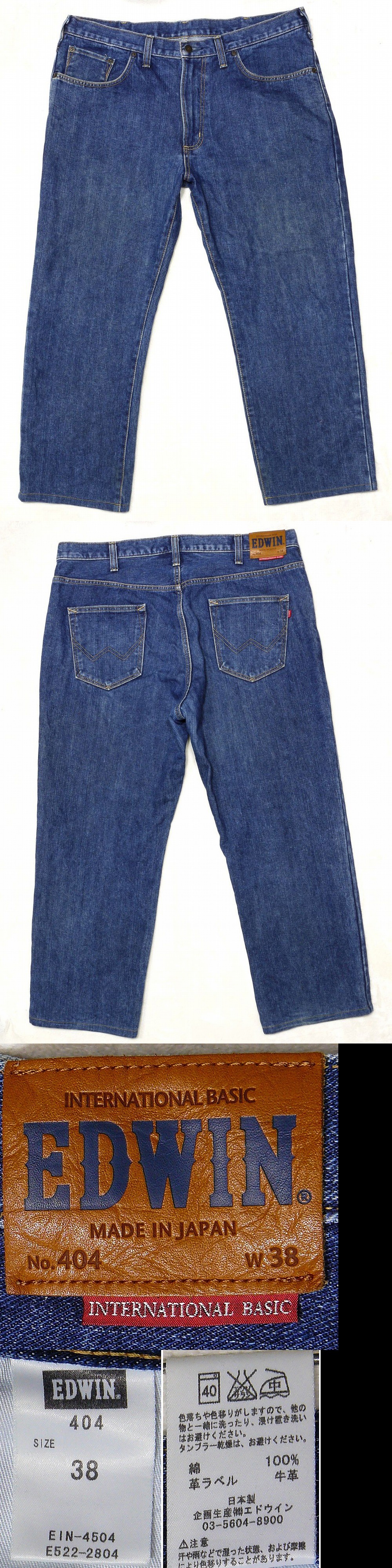 ☆ご覧いただきありがとうございます。 【ご入札される方は必ずコメント欄も含めお読みください。】 ■ ■ ■ ■商品詳細■ ■ ■ ■ ・【メーカー】EDWIN(エドウィン) ・【品番】404 ・【カラー】ブルー ・【サイズ】38インチ ・【素材】綿 100% / 革ラベル:牛革 ・【生産国】日本 サイズは必ず実寸でご確認ください。 実寸
