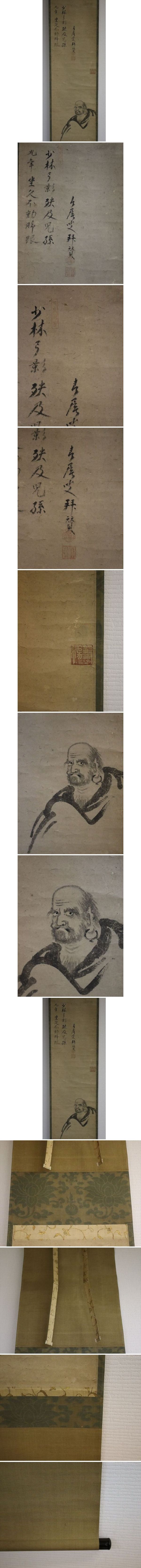 本物保証。美術館級作 売立目録掲載品 男爵関家旧江戸五人衆某家御所蔵品 雪舟 達磨 大徳寺 春屋宗園画賛軸の名品で思わずうなる素晴らしい作品です。 大正5年12月東京美術倶楽部入札品です。 図録のコピーをお付けさせて頂きます。