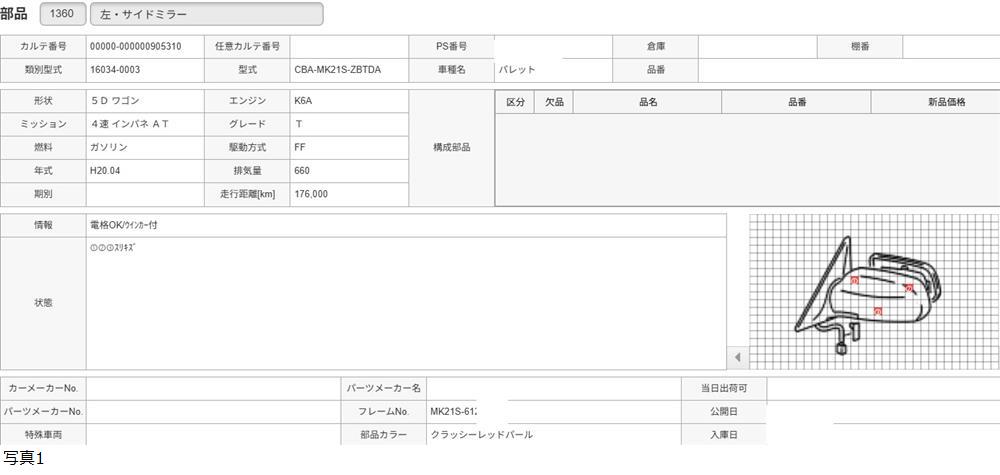 | 【商品状態】 中古部品ですので、へこみ・傷・錆・汚れ等がある場合が御座います。 簡単な動作確認は行っていますが、動作を保証するものでは有りません。 簡易清掃しておりますが、多少の傷・汚れはあります。 写真をよく確認し、ご納得の上ご入札ください。 【注意事項】 ●必ず画像をご参照ください。 ●ご自身または他店で整備を行った際に発生した故障・事故等いかなる損害につきましても商品代金・工賃等の保証は致しかねますので、ご了承ください。 ■ 「当方主観や個人的な感想」 等の表現に関してはあくまでも参考程度に捉えてください。 ■ 当方の説明不足や見落しはありえますのでお気付な点は質問欄からお問合せ願います。 | ||||||||||||||||||||||||||||||||||||||||||||||||||||||||||