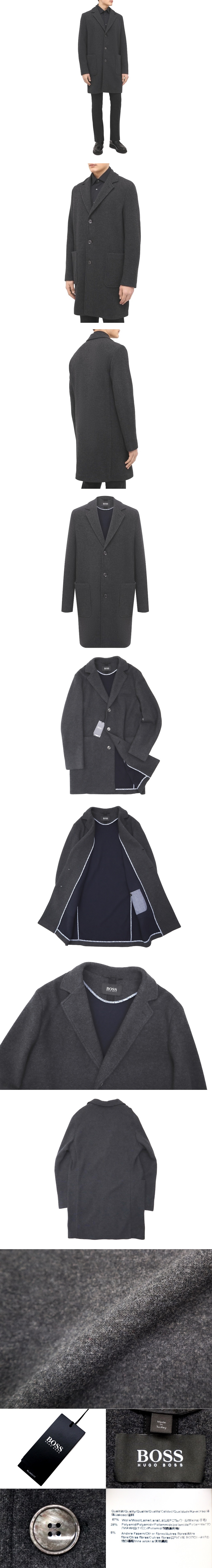 20万新品◆50=M~L◆BOSS ヒューゴボス ストレッチロングチェスターウールコート ダークグレー濃灰