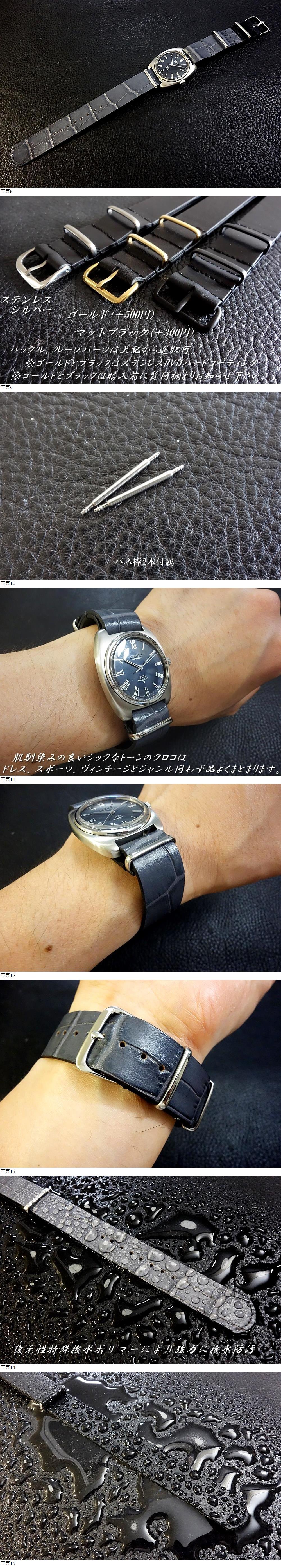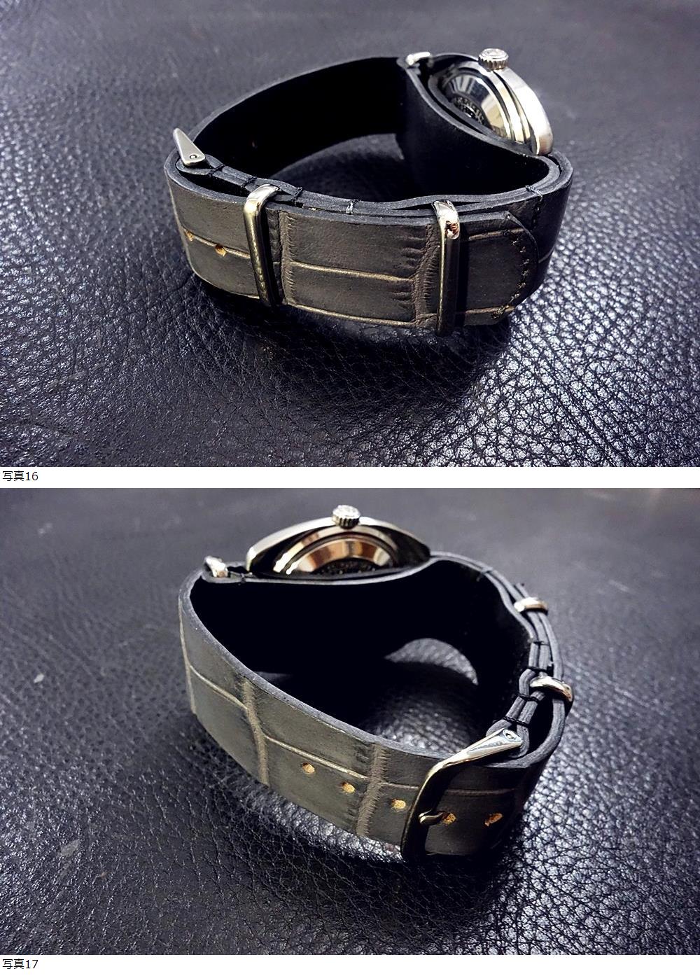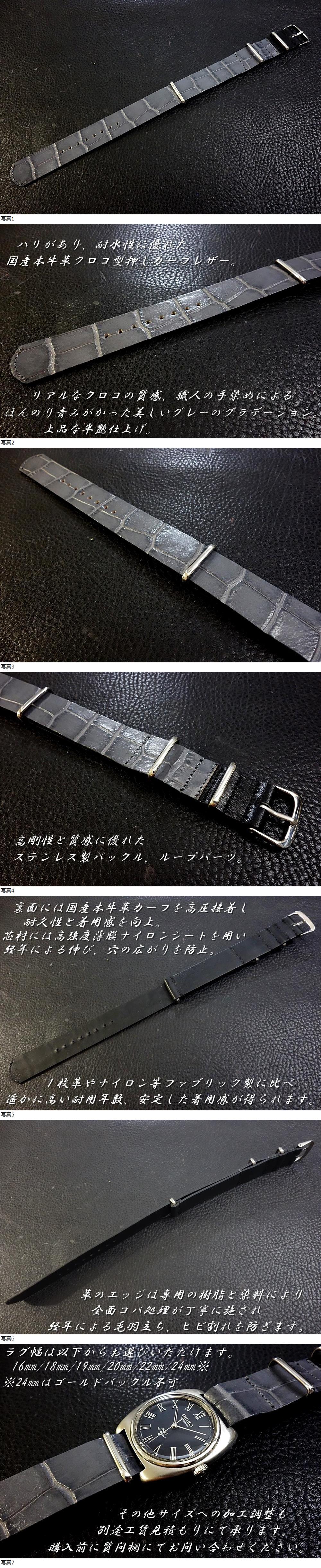 | ◆Leather NATO G10Strap◆高品質国産本革クロコ型押しカーフ アンティークグレー CustomOrder (ラグ幅/BUCKLE COLOR) 受注製作 (納期10日前後) |