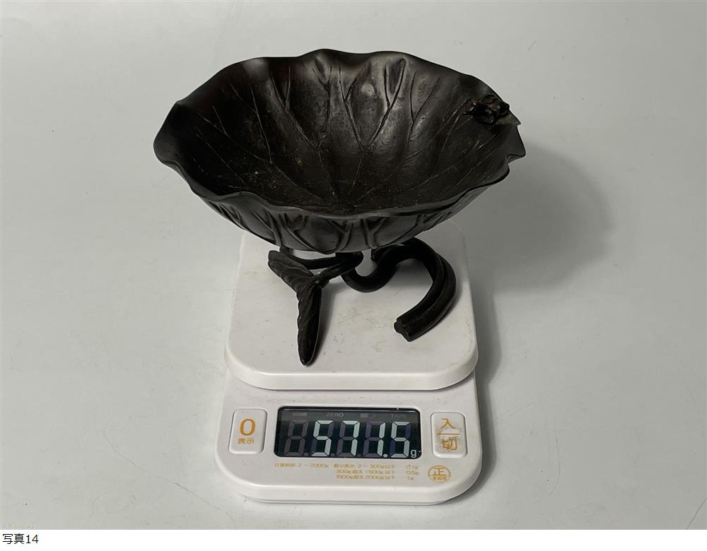 | 古美術品 古銅 蓮葉に蛙 金工 細密 筆洗 銅製 時代 高さ約9.5cm |