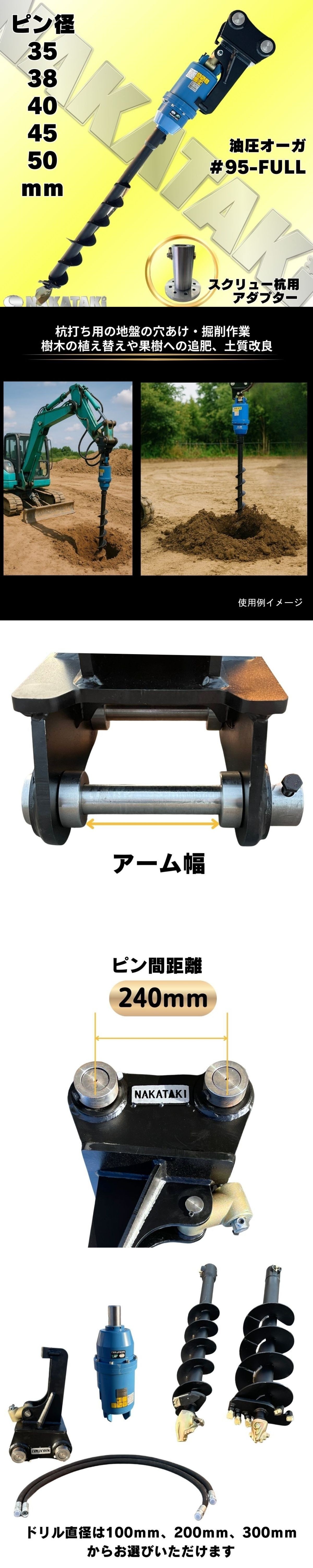 入荷しました!オーガ 油圧ドリル フルセット NAKATAKI #95-FULL 305CR B5 VIO50 PC40-7 PC40MR PC40MR-3 Φ45 穴掘り支柱 重機ユンボ 人気