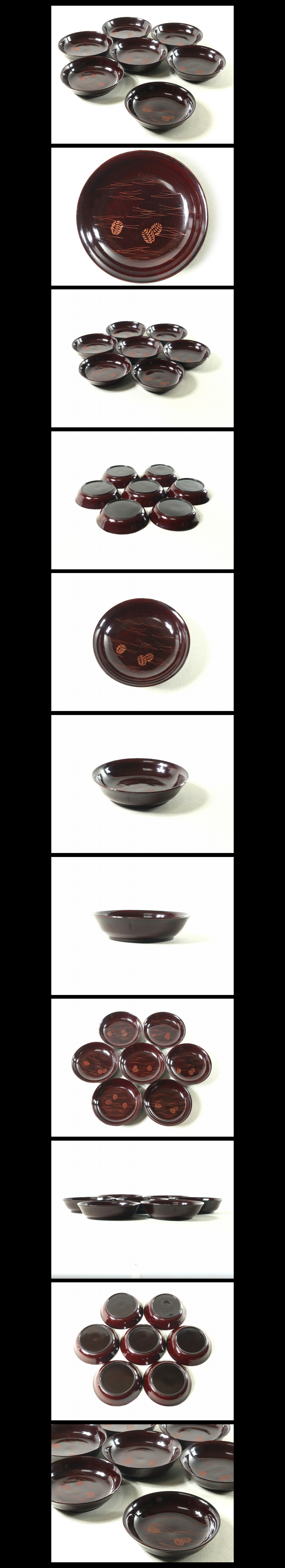 ●c071●【漆絵蒔絵菓子皿7客 松 紅溜塗/木皿吸皿酒木皿つまみ皿】検お茶会煎茶道具茶懐石●西瓜●