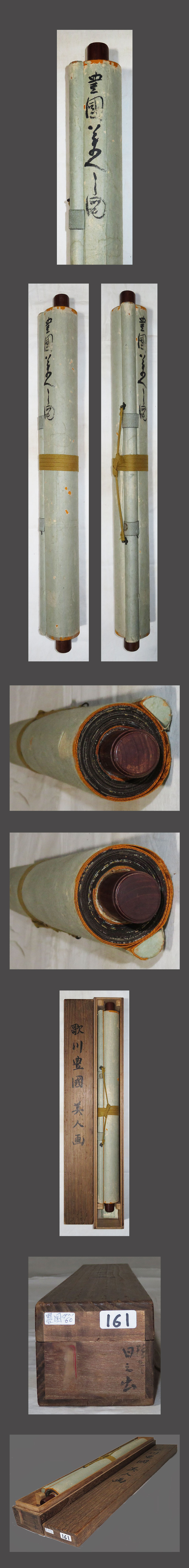 肉筆、真作保証。 作品に、時代感、シミ、汚れ、折れ、巻きじわがあります。 表装に、時代感、多少のシミ、汚れ、折れ、巻きじわがあります。 表装裏側に、経年によるシミ、汚れ、多数のスレ、傷んでる箇所があります。 箱は合わせ箱です。軸先があります。 歌川豊国 略歴:美術評価額800万(画)号一陽斎、豊春門、 役者絵、美人画「役者似顔早稽古」文政8年57才没。 下記の真作保証について・注意事項をよくご覧の上、 お気に召された方に、お譲り致しますので、ご入札を宜しくお願い致します。 |