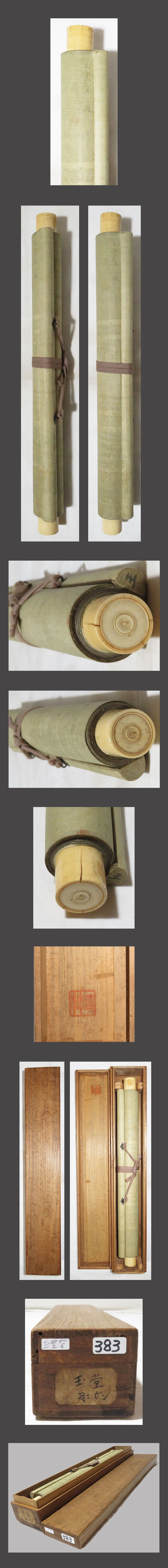 ・掛軸の軸先ですが、細心の注意を払って梱包しておりますが、 配送中の振動・気温・経年劣化等で外れてしまうことがあります。 軸先の外れは、破損ではございませんので、返品の対象にはなりません。 大変お手数ですが、お客様ご自身での修復をお願い致します。 ・添付写真の画像と説明文でご理解頂ける方、ご入札を宜しくお願い致します。 ・添付写真の画像は撮影の光度により、現物と若干の色合いの相違が生じる事があります。 ・添付写真の画像は受取完了のご連絡を頂いた後に速やかに消去しますのでご了承下さい。 ・土・日・祝日はお休みさせて頂きますので、商品発送は、月曜日以降になります。 ・祝日の場合は、翌日の平日以降の発送になります。 ・土・日・祝日は、メールの返信が若干遅れる事がございます。どうか、ご了承下さい。 ・時間的に余裕がない場合などでお答えが出来ない事も多々有ります。 ご不明な点は落札日前日までに早めにご質問下さい。 ・商品トラブルがあった場合は、直ちにご連絡下さい。 お取引に付きましては迅速・丁寧に対応させて頂きます。 ・落札後、できるだけ2日以内に連絡(返信)を頂ける方、 5日以内にご入金できる方の御入札を御願い致します。 ・新規の方や評価の総評が悪い方は当方の判断にて、入札取り消しを行う場合がございます。 ・お取引に付きましては、迅速、丁寧に対応致しますのでどうぞ、宜しくお願い致します。 ・古美術品や古物や古書画の出品が多いため、神経質な方がご入札される場合は、 ご自身が納得の行く価格でご入札ください。 ・万一、ヤフーのシステム障害により、公正なオークションができなかったまま終了し、 落札者様にご落札された場合は、当方より取引ナビで取引中止のご連絡を致します。 その時は、どうか、ご了承をお願い致します。 ・終了当日・直前の入札の取り消しは、 トラブルの原因となりますのでご遠慮お願い致します。 ・入札後の取り消し(キャンセル)は行っておりません。 ・落札後のキャンセル・返品はお断りしてます。 入札前によくご確認頂き、間違いのないようにご注意下さい。 |