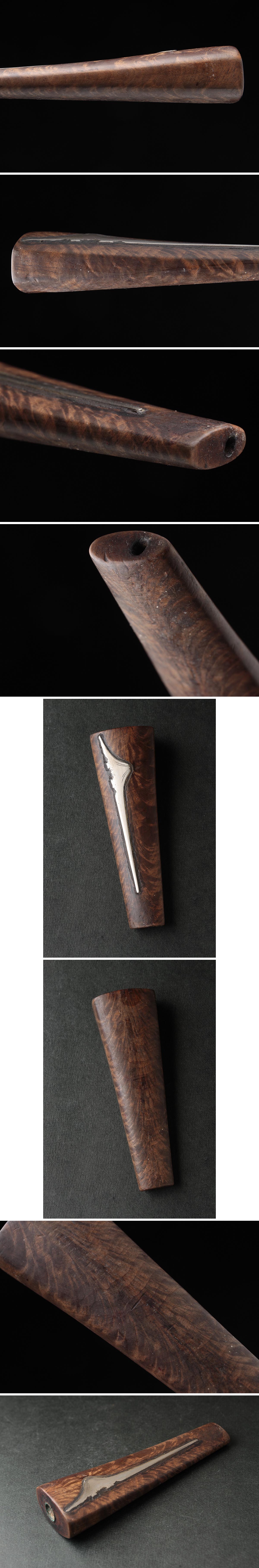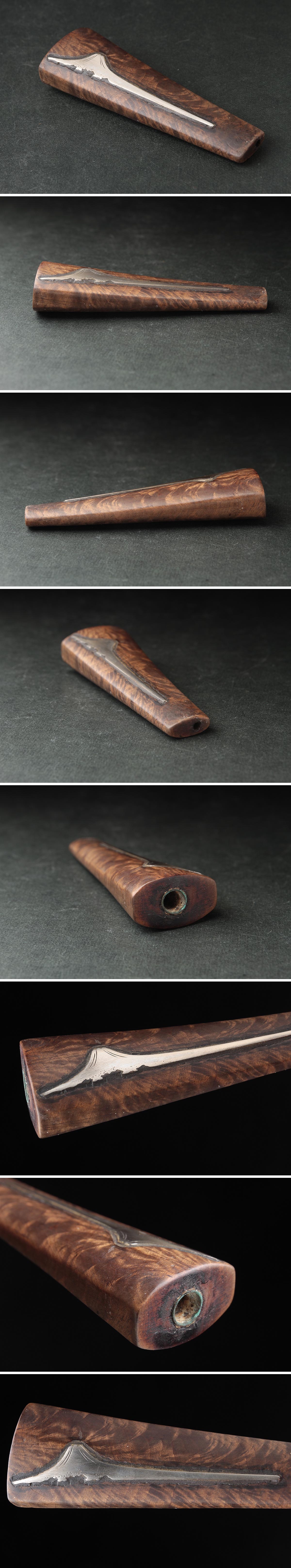 | ◆ 時代喫煙具 天然木 美杢 銀象嵌 富士山図 吸口 全長9.6cm / 重25g・木製銀嵌吸口・シガレットホルダー・パイプ 古美術 ◆