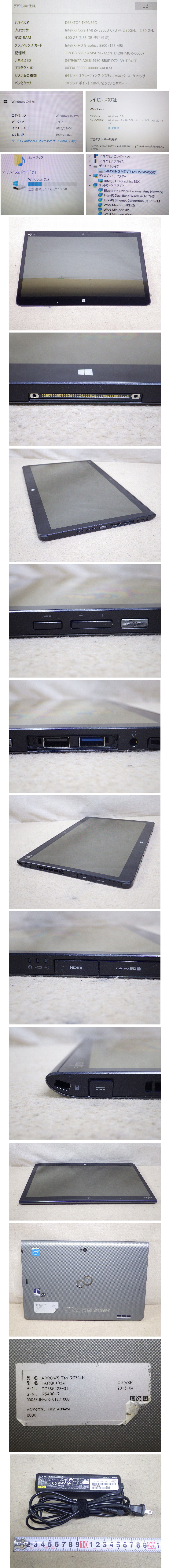| 商品名 | Kこま2623 富士通■13.3インチ Windowsタブレット■ARROWS Tab Q775/K■Win10Pro■Core i5-5300U@2.3GHz■メモリ4GB■SSD128GB■本体 |