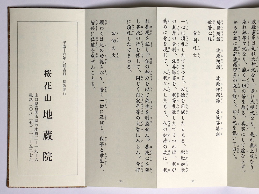 【経本】在家勤行次第 ドンス 2004 平16 桜花山 地蔵院 和本 古典籍 仏教 折本 -- 管: KK83