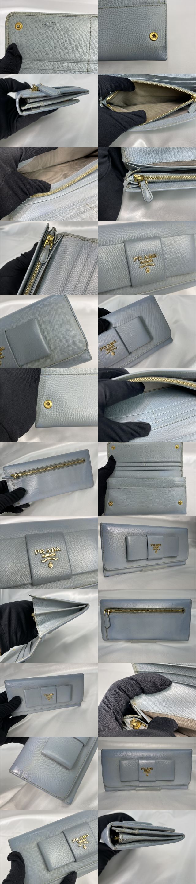 1円 PRADA プラダ サフィアーノレザー 長財布 リボン ダブルホック ライトブルー ゴールド金具 レディース ウォレット 正規品 [浏览原始页面]