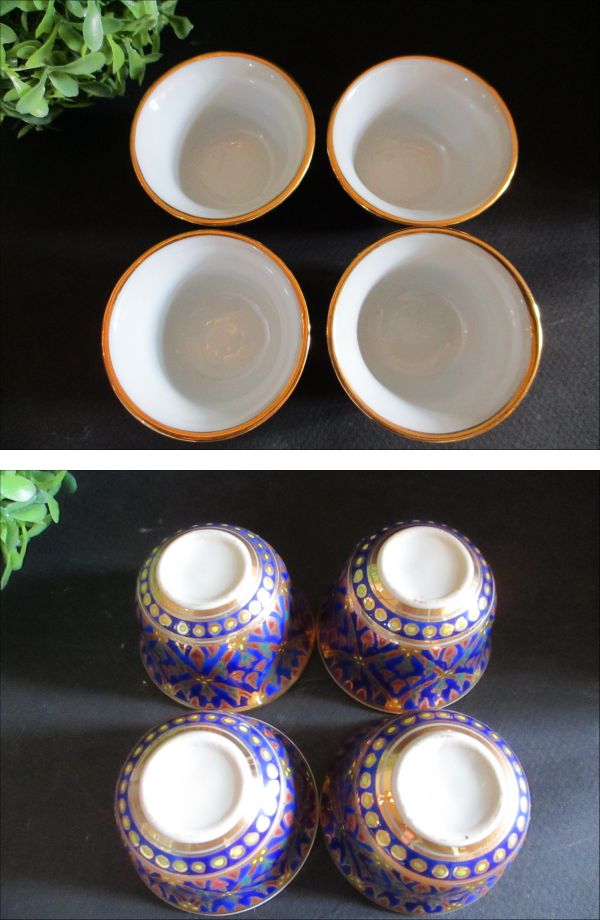 | ご覧いただき、ありがとうございます。 【美品】 タイ ベンジャロン焼 茶器 ティーセット ポット&カップ(4個) 金彩 高級食器の出品です。 タイ王室御用達ベンジャロン焼 タイの高級茶器セットになります。 ポット&カップ(4個)のセットです。 インテリアの飾り、オブジェなどにもお薦めです☆ この機会にぜひいかがでしょうか☆ 【サイズ・約】 ポット:持ち手から注ぎ口までの幅 15cm 蓋付きの高さ 11cm カップ:口径 5.3cm 高さ 3.5cm (おおよそのサイズです。素人の採寸ですので若干の誤差はお許しください。) 【商品の状態】 使用品です。 自宅での長期保管品になります。 割れ、欠け、破損等はございません。 製造時からの釉薬ムラ、釉薬飛びがございます。 特に大きく目立つような金彩擦れはございません。 糸尻部分の汚れが若干ございます。(画像参照) USED品としては良い状態の方だと思いますが、状態の捉え方には個人差がございます。 細かな点が気になる方はご入札をお控えくださいませ。 USED品にご理解ある方のご入札をお待ちしております。 専用の箱はございませんが、丁寧に梱包して発送いたします。 詳細は写真をご覧の上ご判断ください。 画像に写るグリーンの球体(直径11cm)は商品には含まれません。 ご不明点はご質問くださいませ。 最終日のご質問には回答が間に合わない場合もございます。ご理解くださいませ。 | |||