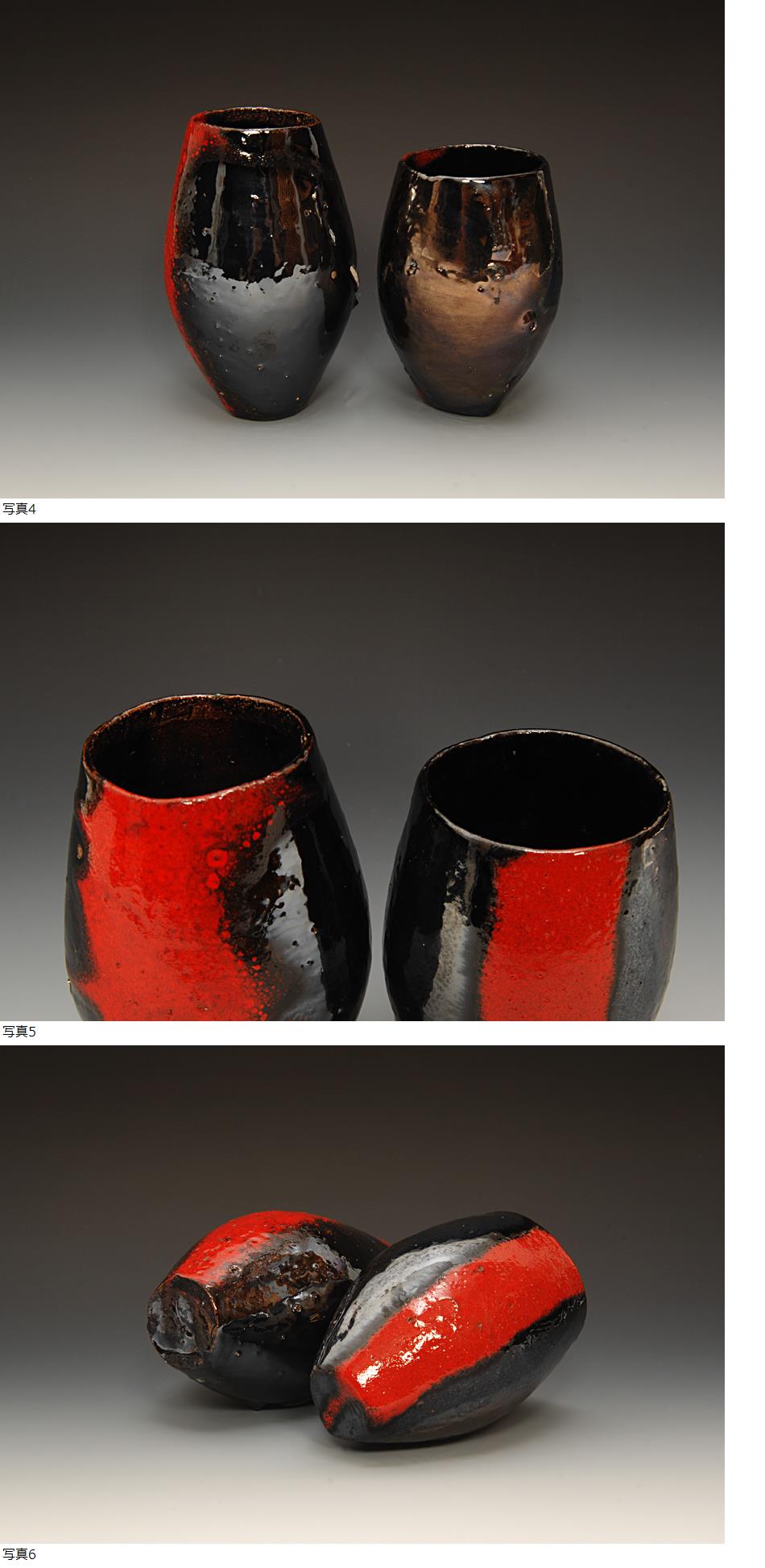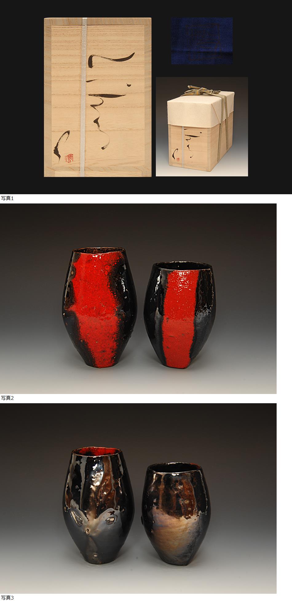 星庵厳選名品企画 市川透 赤黒色備前湯呑み一対 共箱