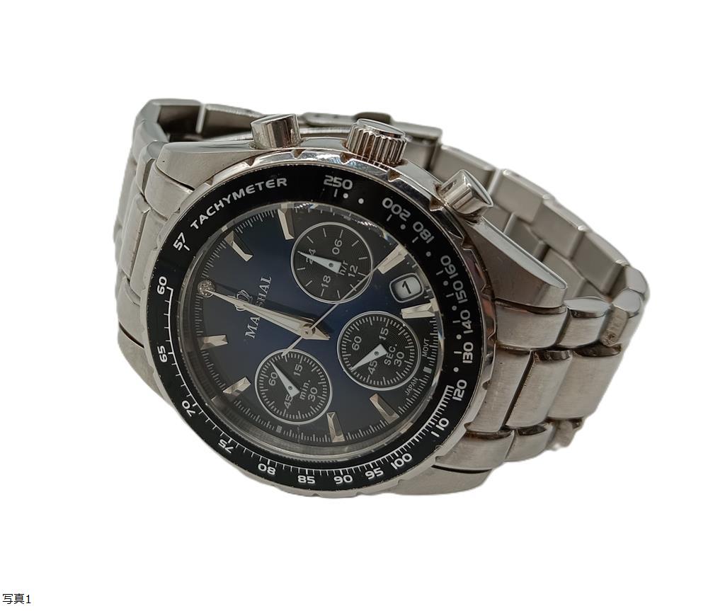 | 不動品【 MARSHAL 腕時計 MRZ-017 】マーシャル メンズ 3針式 クロノグラフ ネイビー文字盤 シルバー デイト クォーツ QZ MN |