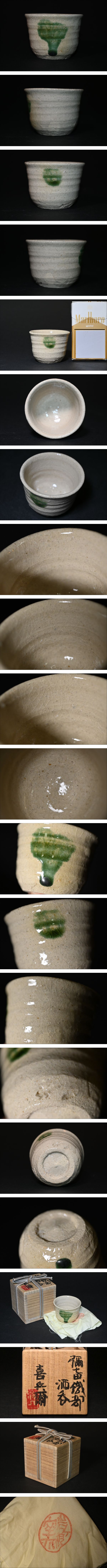 真贋保証■瀧口喜兵爾 作■ 弥七田織部 酒呑 共箱・共布 加藤十右衛門に師事 岐阜県可児市 浅草生 彌七田 酒器 酒杯 酒盃 ぐい呑 | |||