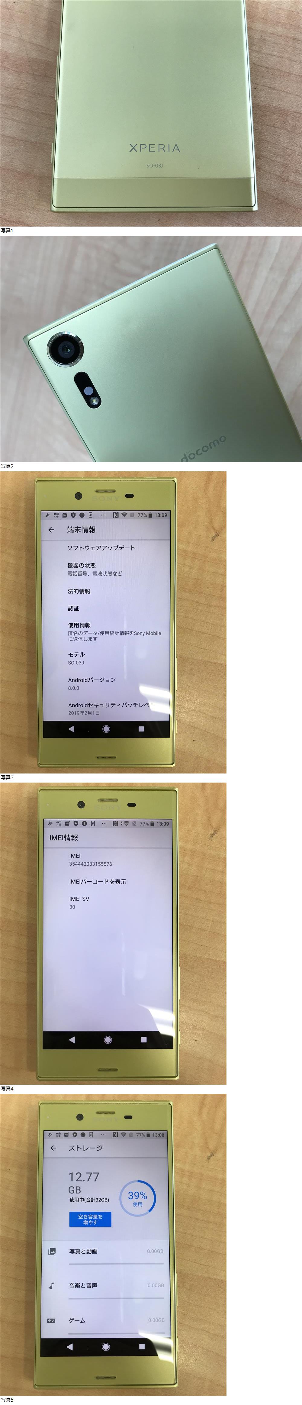 | 商品説明 | ・タッチ、ボタン操作・サウンド関係・カメラなど簡単な動作確認済みですが、長時間での詳細な確認はしておりません。ご了承の上ご入札ください。 ・本体のみの出品になります。 ・表面上部や下部に打痕キズが複数見受けられます。写真にてご確認ください。 ・写真2 背面上部にへこみ?のような部分がございます。ご確認ください。 ・その他小キズや汚れなど見受けられます。ご了承ください。 ・写真には写りきらない汚れ、キズなどある可能性がございます。 ・SIM:ドコモ ・IMEI :354443083155576 ・初期化済み ・水没判定 : 不明 ・ネットワーク判定OK ≪注意事項≫ ※毎週月曜日は休みを頂いております。日曜日の17時頃から火曜日の午前中まで、連絡・発送等の対応が出来かねますので予めご了承くださいませ※※ ※商品の送料に関しましては本文下部に記載しておりますのでご確認ください。※※ ・写真に写っているものが全てです。キズ、ヨゴレ等、状態については画像にてご自身でご確認いただき、画像にてご判断頂ける方のみご入札ください。 ・写真には写りきらないキズ・汚れ等ある場合がございます。予めご了承下さい。 ・商品の写真と実際の色がモニターの種類、照明の違い等により少し実物と違って見える場合があります。 ・商品をご理解の上、ノークレーム、ノーリターンでお願い致します。 ・商品落札当日、夕方以降のご質問には対応出来かねますのでご了承ください。 ・分かる範囲内で質問等にはできる限りお答えしますので、お気軽にお問い合わせください。 ≪お支払い方法≫ ■ヤフーかんたん決済 ※かんたん決済期日を取引期限といたします。期限を過ぎた場合は取引をキャンセルさせて頂きますので予めご了承ください。 ≪発送詳細≫ ※ゆうパック、商品によっては定型(外)郵便、レターパックで対応致します。 ※商品の発送は責任を持って行いますが、万が一の運送時の事故や破損、紛失等(特に定形郵便・定形外郵便)には責任を負いかねますので、発送方法等は十分にご考慮のうえお選びください。 ※実際に梱包した際にサイズ、重量に差異が出る場合が御座いますが、差異分の追加請求または返金の対応はしておりません。 ※その他の発送を希望される場合は事前に、落札前にご連絡下さい。 ※こちらの商品は愛知県からの発送になります。 ※出来る限り迅速な対応を心がけていますが、個人出品になりますので、ご連絡が遅れる場合があります。 ※ご入金後、3日前後で発送いたしますが、土日祝・盆・年末年始等は発送が遅れる場合があります。 ★上記の内容に理解を得らる方、また画像で判断できる方のみご入札をお願いします。 | |