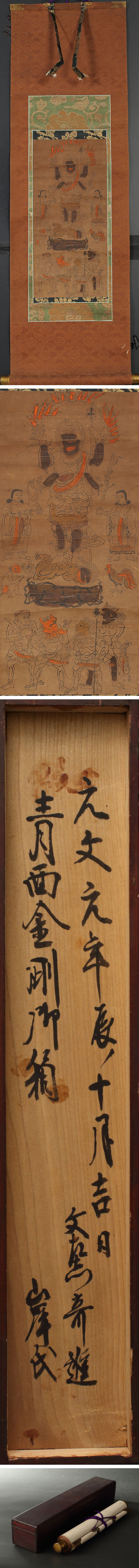 【版画】委託HK◇時代 木版彩色青面金剛像 元文元(1736)年寄進(掛け軸 古版画 大津絵 合羽摺 民画 庚申堂 本尊 仏画 近世日本画 摺物) [浏览原始页面]