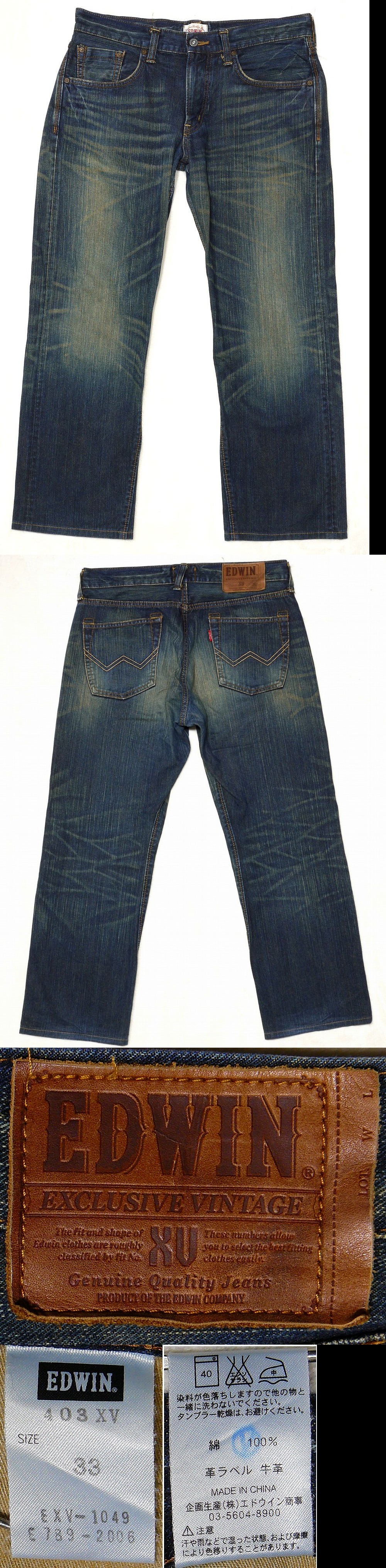 ☆ご覧いただきありがとうございます。 【ご入札される方は必ずコメント欄も含めお読みください。】 ■ ■ ■ ■商品詳細■ ■ ■ ■ ・【メーカー】EDWIN(エドウィン) ・【品番】403XV ・【カラー】インディゴブルー(濃紺・ウォッシュ加工) ・【サイズ】33インチ ・【素材】綿 100% / 革ラベル:牛革 ・【生産国】中国 サイズは必ず実寸でご確認ください。 実寸