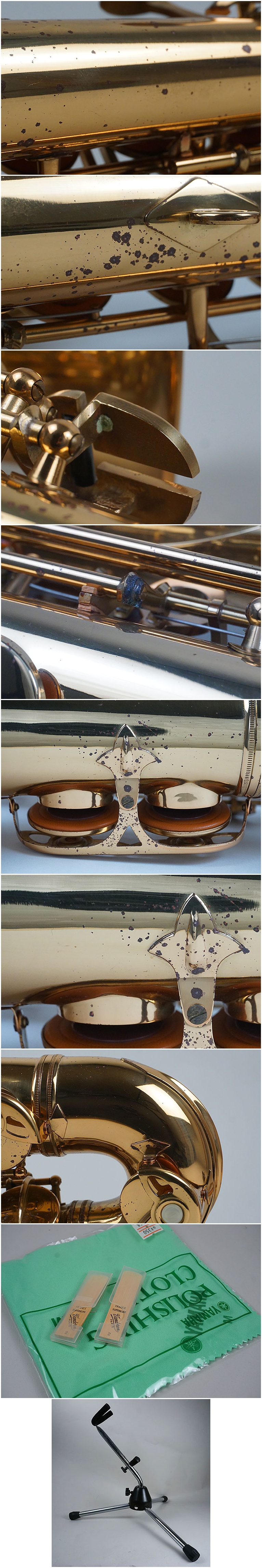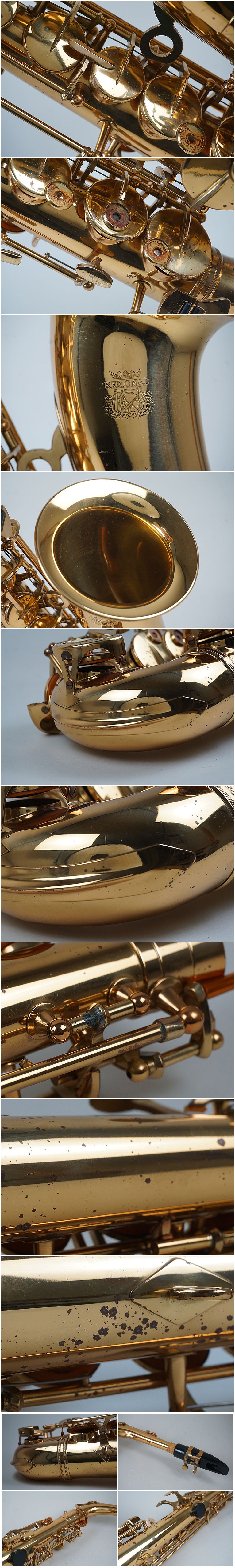 | 商品説明 | 古いアルトサックスです。 Premonadoとあります。 抑え部分のパーツ欠損(外観から4箇所ありました。)、薄い錆、金具の緑青などあります。 中古品となります。 調整、整備必要かと思います。宜しくお願いします。 | |