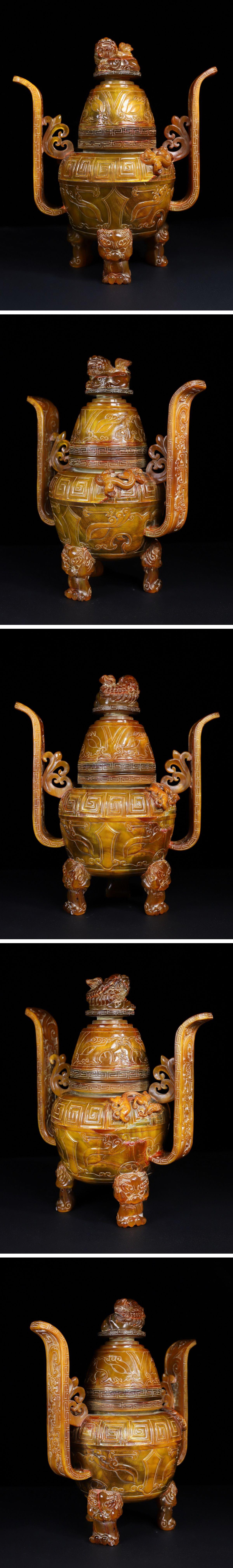 【雲錦】1円から 時代物 牛角刻 巨大三足沖天耳爐 中国骨董品 材質保証 時代物保証 古美術 骨董品8L19-8JX8