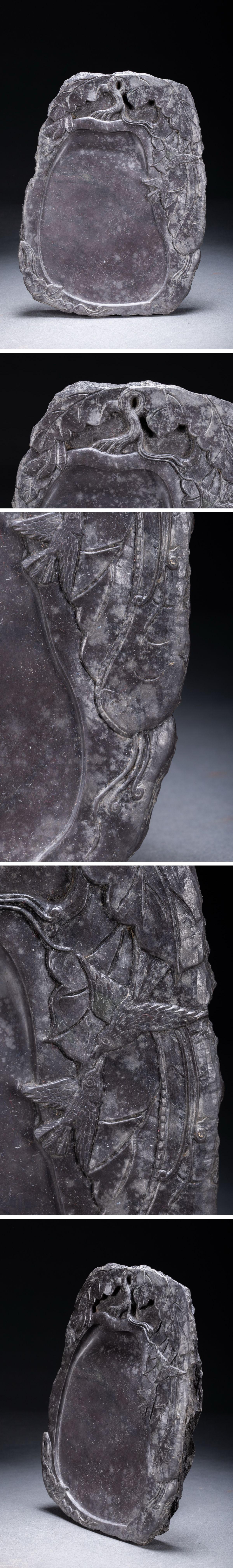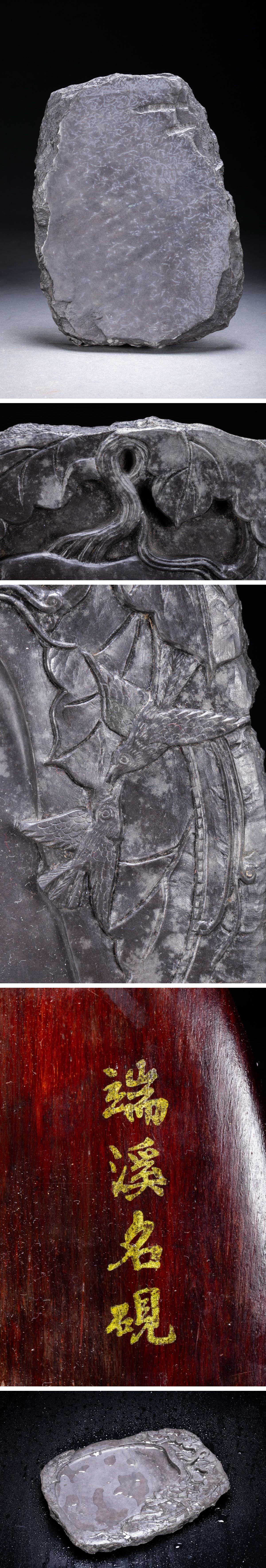 【雲錦】1円から 時代物 中国伝来 老坑 古端渓 花卉紋文房硯 古書道具 材質保証古美術 骨董品8L1-132