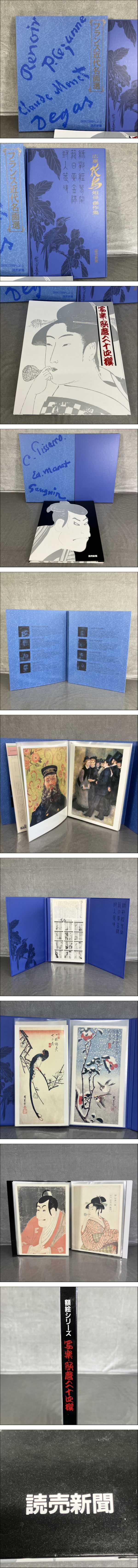 | 商品説明 | 【GW休業のお知らせ】 誠に勝手ながら、【4月29日(水)~5月10日(日)】は休業とさせていただきます。 期間中は、返信および発送業務を休止いたします。 4月27日(月)午前9時までに決済が完了したご注文分は、連休前に発送いたします。 それ以降につきましては、自動キャンセルとなる可能性がございます。 なお、ご連絡をいただけない場合は、着払いにて発送させていただく場合がございます。 何卒ご理解賜りますようお願い申し上げます。 ★最後までお読みいただき、ご理解の上でのご入札をよろしくお願いいたします。 【FM 002】 読売新聞 額絵シリーズ 3冊 セット 写楽・歌磨 二十四撰 広重 花鳥短冊傑作集 フランス近代名画千 歌川広重 浮世絵 日本画 【動作状況】 こちらは、Cになります。 A:動作確認OK(全ての機能が問題なく使用できるか保証できません) B:通電のみ確認(動作確認は行っていない為ジャンク品の可能性含む) C:動作未確認品(ジャンク品の可能性含む) D:不動品、ジャンク品 ※動作未確認の商品は保証出来ません。 【商品状態】 基本的に中古品の為、スレや傷・汚れなどございます。 多数商品がある場合、傷や汚れを写真に載せきれない可能性もございます。 あらかじめご理解・ご了承の上入札をお願いいたします。 また、細かくクリーニングしている訳ではありませんので 状態を極度に気にされる方、神経質な方は入札をお控えください。 【商品について】 商品に関する専門的な知識がないため、ご質問等にお答えできない場合や、細かな状態の見落としがあるかもしれません。 商品の状態は画像にてご確認いただき、中古品の性質をご理解のうえ、ご検討いただけますと幸いです。 気になる点は、ご購入前にぜひお気軽にご質問ください。 ■写真に写るもののみの販売となります。 写真にないものは付属いたしません。 画像をご確認の上、商品の状態に納得して頂いた方のみ入札をお願いいたします。 【サイズ】 W約31cm×H約39cm×D約1.5cm ※素人採寸のため多少の誤差はご容赦ください。 【取引ナビの対応日時】 ■平日9:00-17:00となります。※土日祝日は休業 【発送方法】 発送は佐川急便よりお送りいたします。 原則ご入金後、発送まで3日~7日お時間を頂いております。落札商品の量によって発送までのお時間が前後してしまう可能性があります。商品をお急ぎの方はご注意ください。 ※発送元地域が異なる商品の同梱はできません。 また土日祝日はの取引全般をお休みしておりますので発送/連絡はできません。いつ頃発送するのか等の催促はおやめください。 ※沖縄・離島の方は【中継料】が発生し送料が高額になります為、佐川着払いとなります。 ※中継料が発生した場合、追加で中継料分の不足送料を請求させて頂きます。必ずご自身のお住まいをご確認頂いてから入金をお願い致します。 【直接引き取り】 引き取り場所は東京都八王子市になります。 詳しいご案内場所は落札後、取引ナビにてご連絡いたします。 受付時間:平日10-17時 (12-13時を除く) 商品の保管期間は支払い後、1週間(7日間)とさせていただきます。 直接引き取りをご希望される場合は、以下の通りお手続きをお願いいたします。 お取引の際は、「単品取引」を選択してください。 送料の選択では、必ず「0円(無料)」をご指定ください。 【重要】 システムの都合上、複数ご購入の場合でも「まとめて取引」は選択されないようお願い申し上げます。 ご理解とご協力のほど、よろしくお願いいたします。 ■手順 ① 取引情報の入力 ② yahoo!かんたん決済で支払うをクリック ③ 配送方法を直接引き取り0円を選択し決済を行ってください。 ④ 取引メッセージに 直接引き取り希望と、希望日、希望時間帯をお知らせください。 後程、ご案内の通知をいたします。 【注意事項】 ■発送連絡と同時に評価も入れております。評価不要の方はご落札時にメッセージでお知らせください。 ■商品到着後、破損があった場合は配送業者へ一度ご連絡をお願い致します。 ■発送方法の変更はお受けできません、また送料に納得がいかないままの入札はご遠慮ください。 ■商品到着後7日以上経ってからの返品・返金は対応出来ません。品物が到着次第すぐに商品の状態をご確認ください。 【受取連絡後の対応について】 商品到着後、必ず内容のご確認をお願いいたします。システム上、受取連絡をいただいた時点で取引完了とみなされます。その後の返品・返金やクレームには一切対応いたしかねますので、あらかじめご了承ください。 ★他にも沢山の商品を出品しております。 ご興味のある方は、他の商品も是非ご覧下さい。