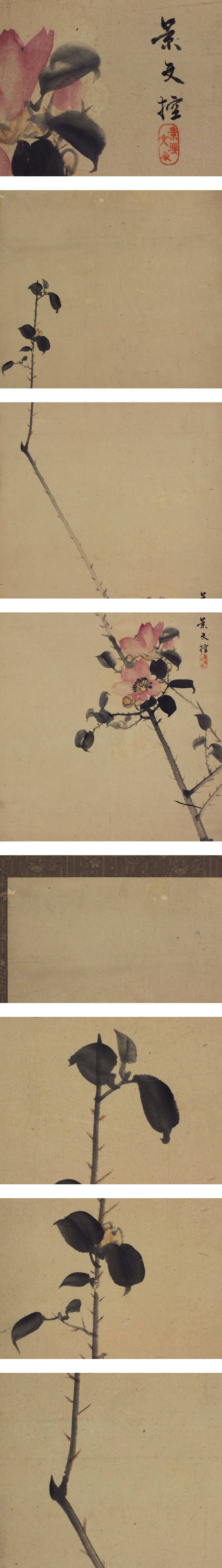松村景文 まつむら けいぶん 1779-1843 江戸時代後期の画家。 安永8年9月5日生まれ。松村月渓(呉春)の異母弟。優麗な花鳥画を得意とした。兄なきあと四条派の中心となる。天保(てんぽう)14年4月26日死去。65歳。京都出身。字(あざな)は士藻。通称は要人。号は華渓。呉景文ともいう。作品に「花鳥図襖(ふすま)」など。 本紙は、染み、汚れ、折れ跡、しわ跡、虫食い跡、生地剥がれ跡があります。 表装は、額部に傷、塗りの剥がれ、修理跡があります。 【サイズ】 作品 横約30.5cm×縦約83.5cm 表装 横約41cm×縦約110.5cm |