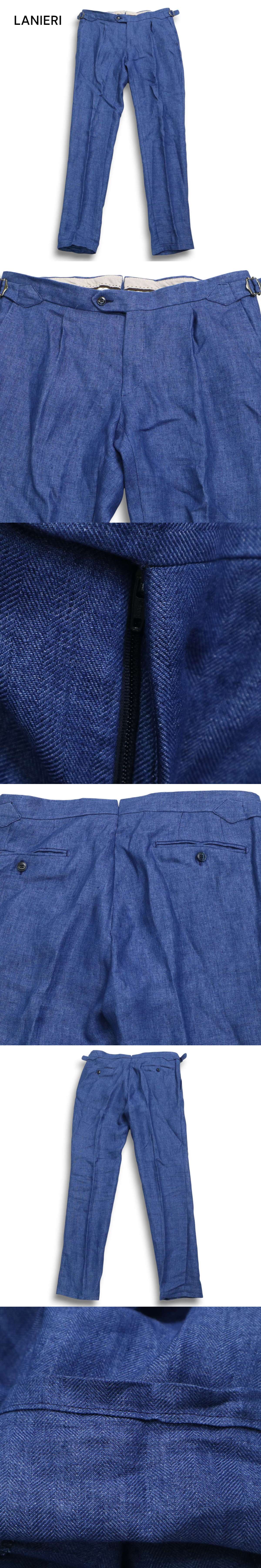 | LANIERI ITALIA ラニエリ イタリア 春夏 麻 リネン100%★ テーパード スラックス パンツ Sz.L メンズ ネイビー C5B01892_4#P | |||