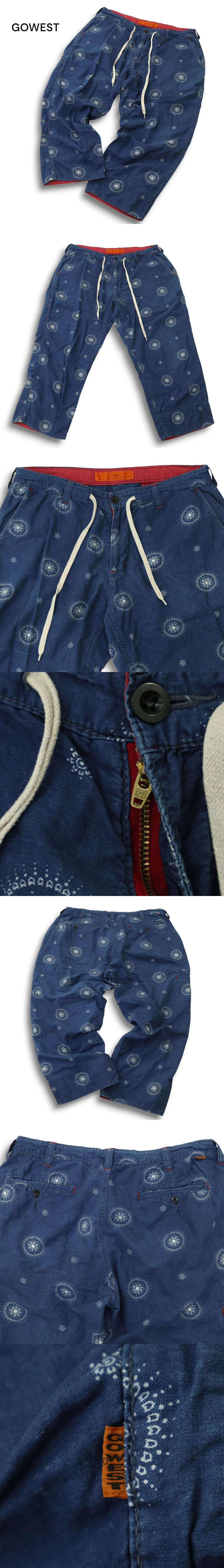 | GOWEST ゴーウエスト デザイン総柄★ インディゴ クロップド イージー パンツ Sz.32 メンズ 日本製 A5B02136_4#R | |||