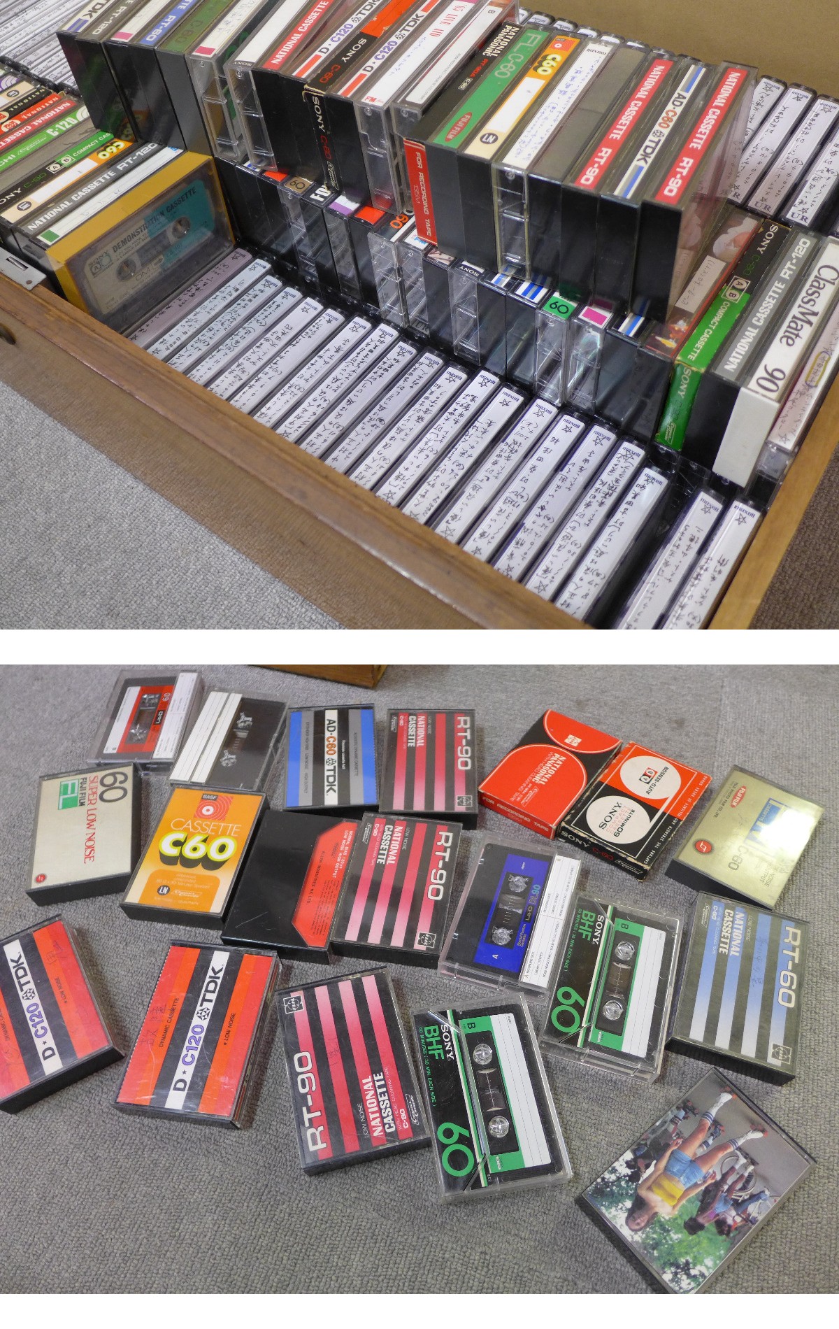 引き出しに入った状態で出てきました(写真の通りの状態)送付の際は引き出しから出して発送します(引き出しは送りません)昭和時代からの古いカセットテープ400本以上まとめてどうぞ!使用済みです。パッと見では60分以上のテープが多いように見えます(全て調べていません)通常通りに使用できるかどうかは分かりません(試してもいません)中身の状態などはケースから出して確認などは一切しておりません。写真現状成り行きでご理解いただける方のみお願いします。外側は経年のほこり汚れが見える物もあります。内容や状態などは画像参照でお願いします。こちらの商品は重量の関係で宅急便2個口発送となります。ご了承ください。