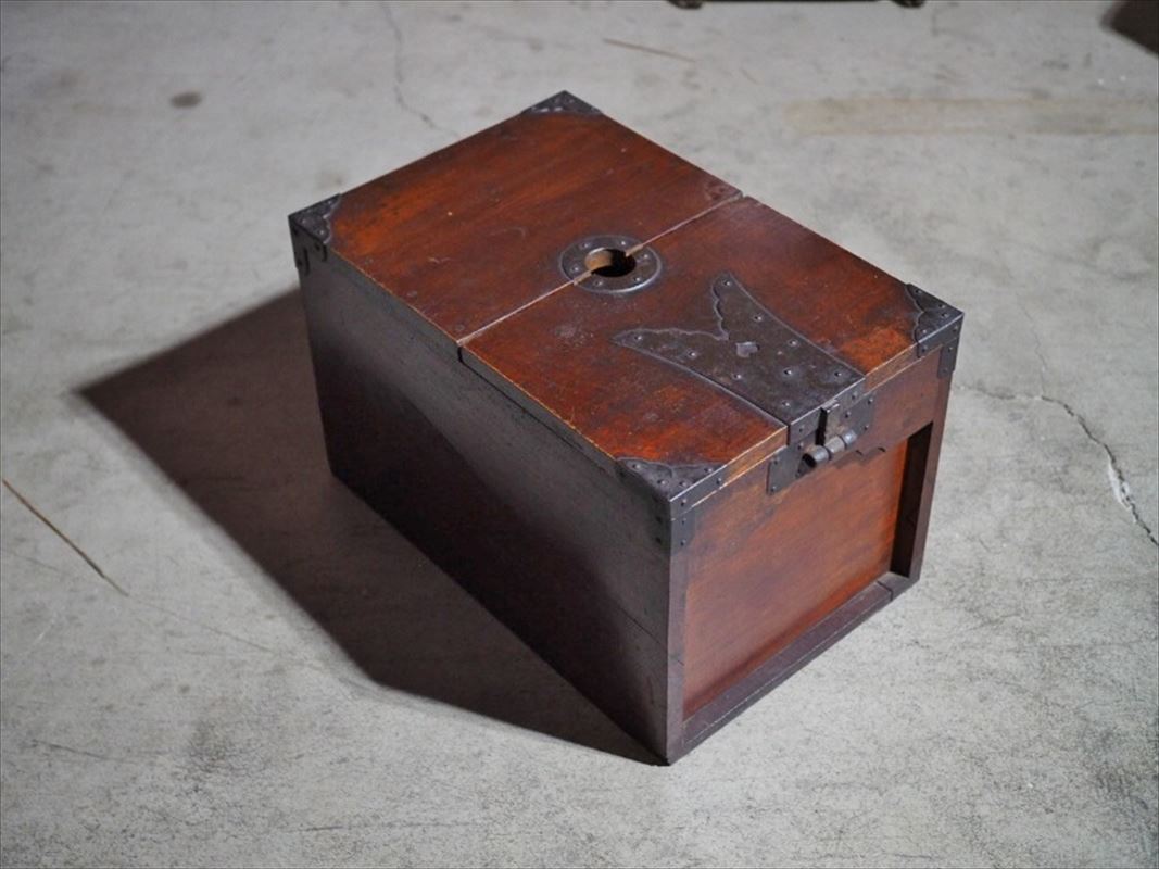| 総欅造り 頑丈堅牢銭函 サイドテーブルに 江戸時代 古録展 送料別 Eサイズ 中古 品番K10912 | |
