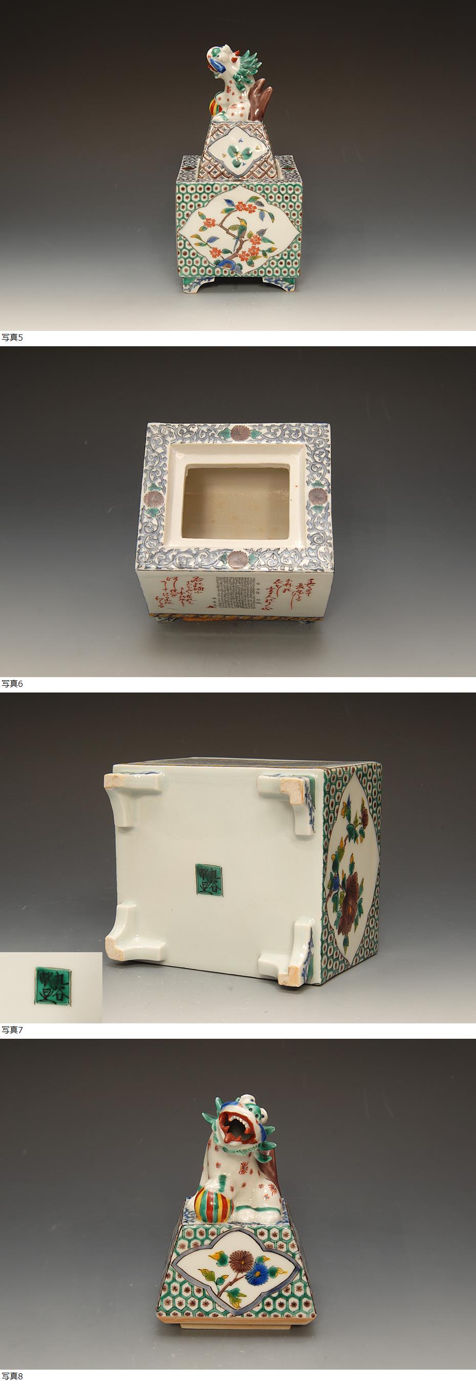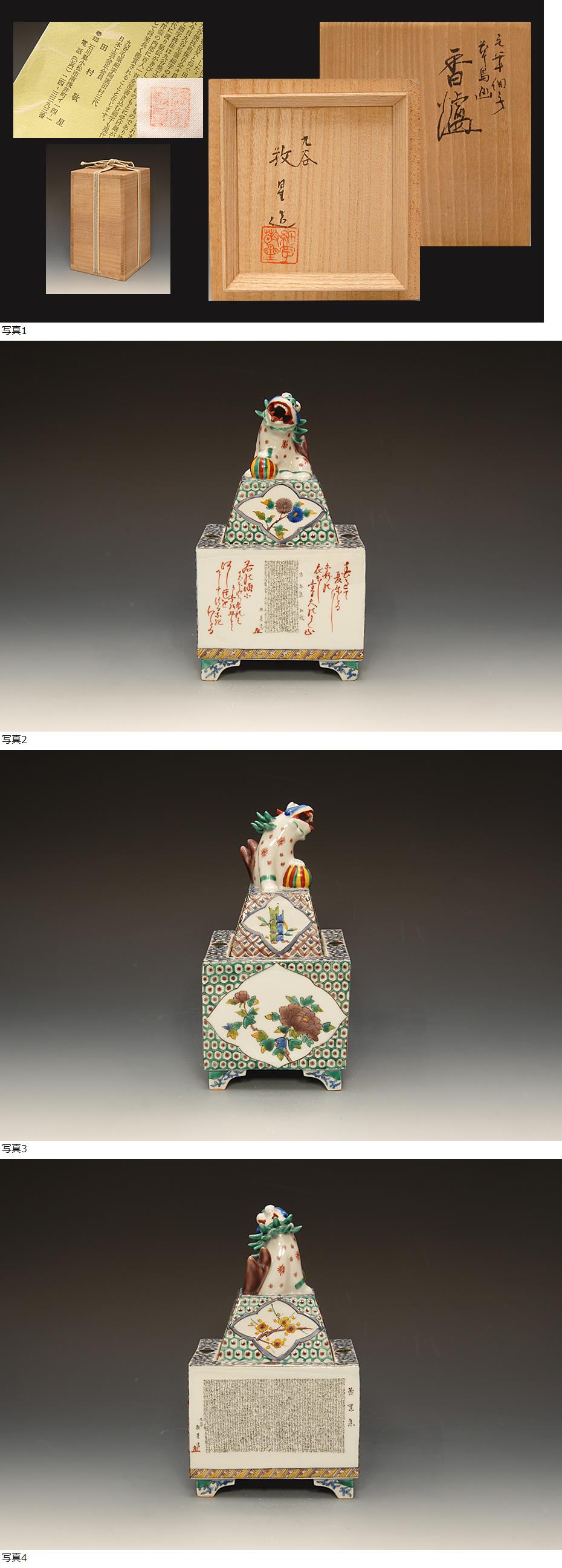 星庵厳選名品企画 県指定無形文化財 田村敬星作 九谷毛筆細字獅子香櫨 共箱