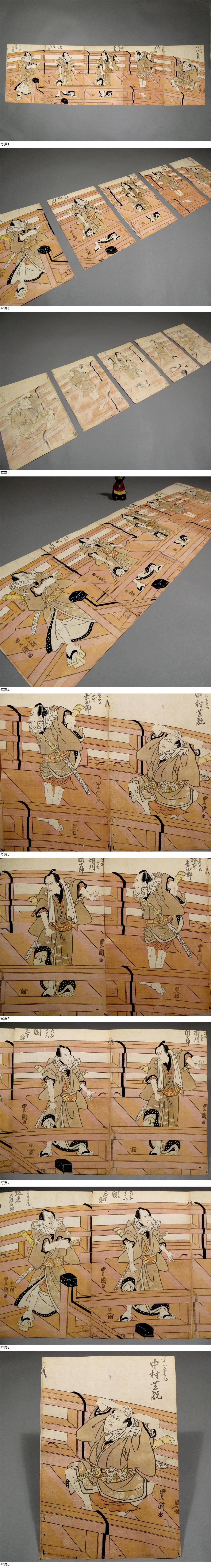 ■ 初代豊国 5枚続揃い!雁金五人男の図 江戸時代 木板浮世絵 元禄年間 大坂で暴れた浪花五人男 ■